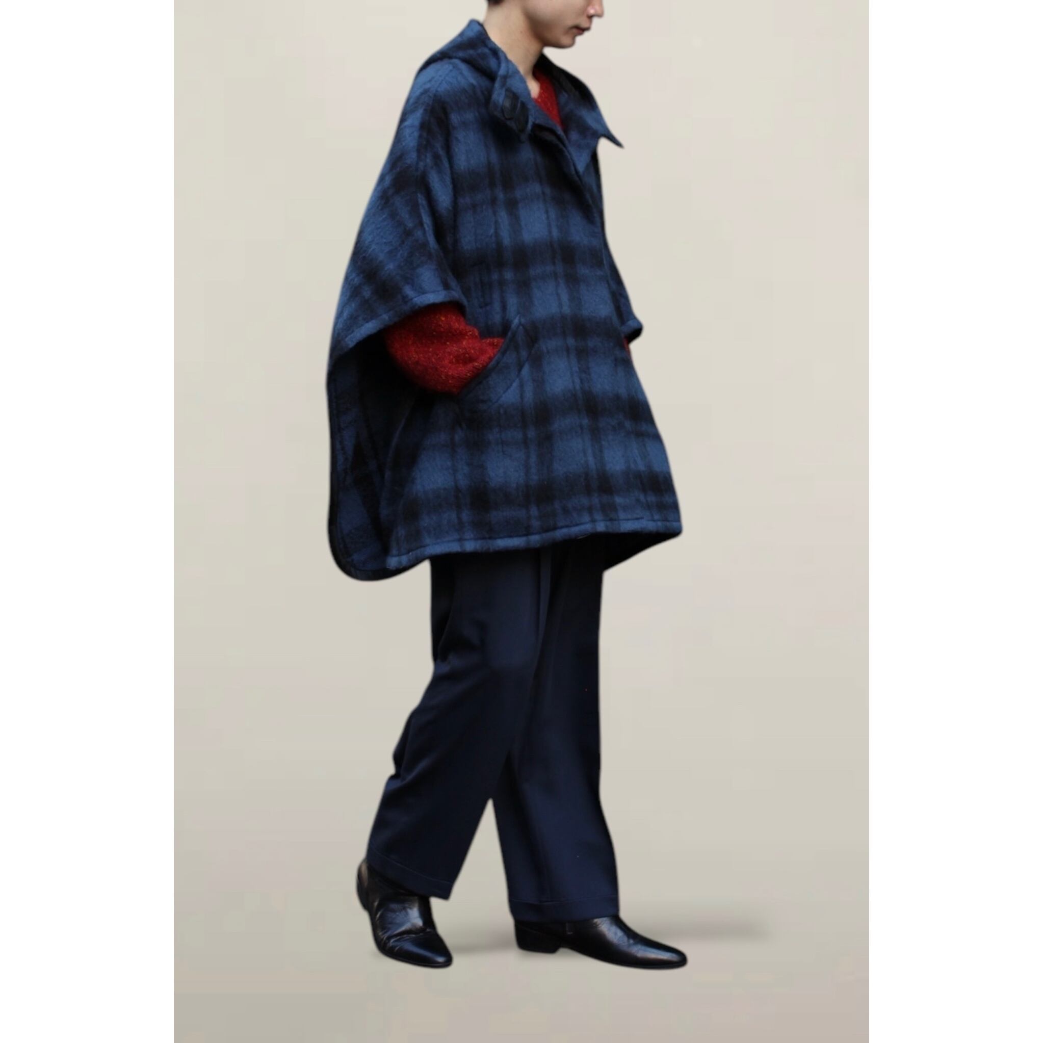 【OTSU】"COACH" alpaca mix ombre check pattern hooded design poncho -12028-