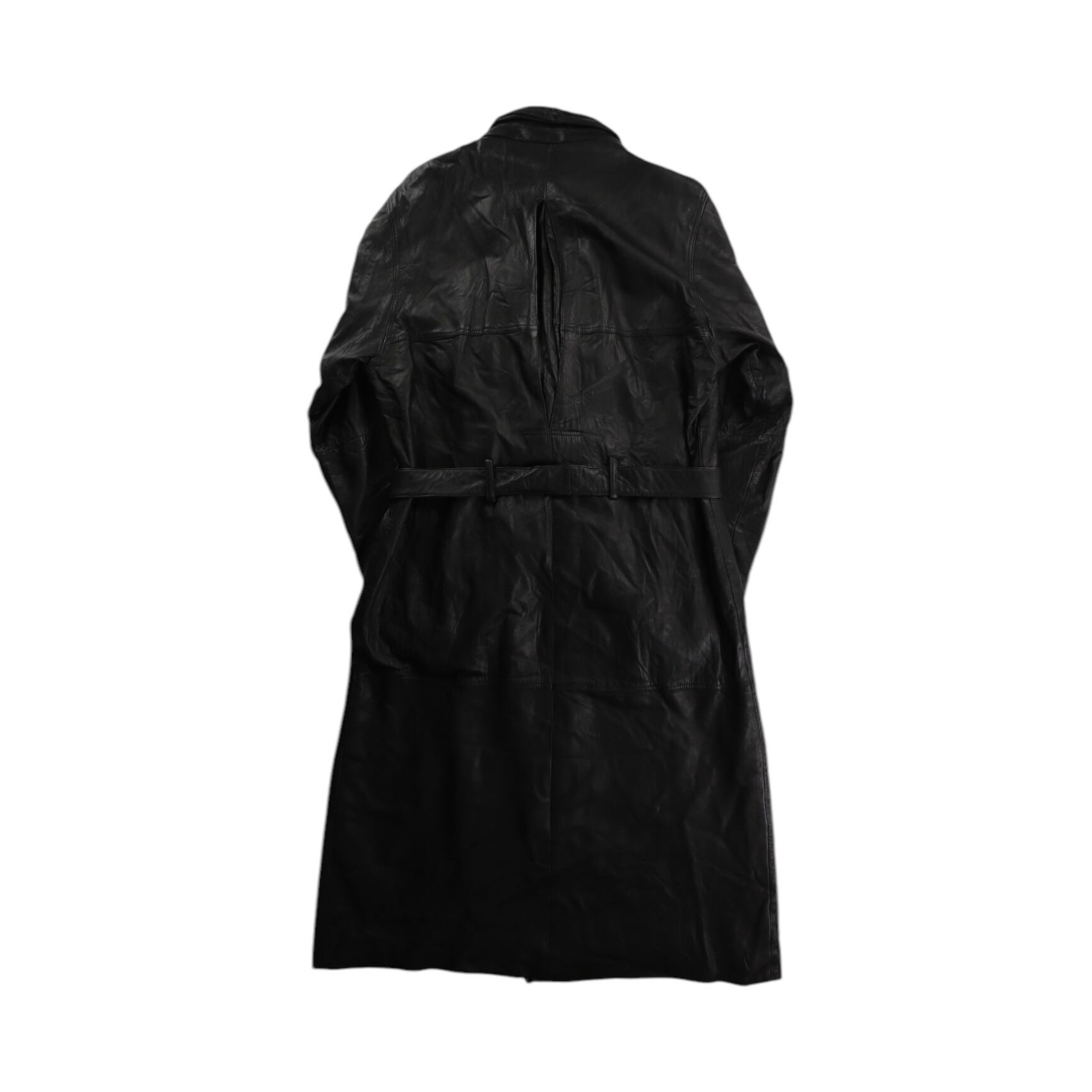 【OTSU】1990's lamb leather double trench coat with belt -11753-