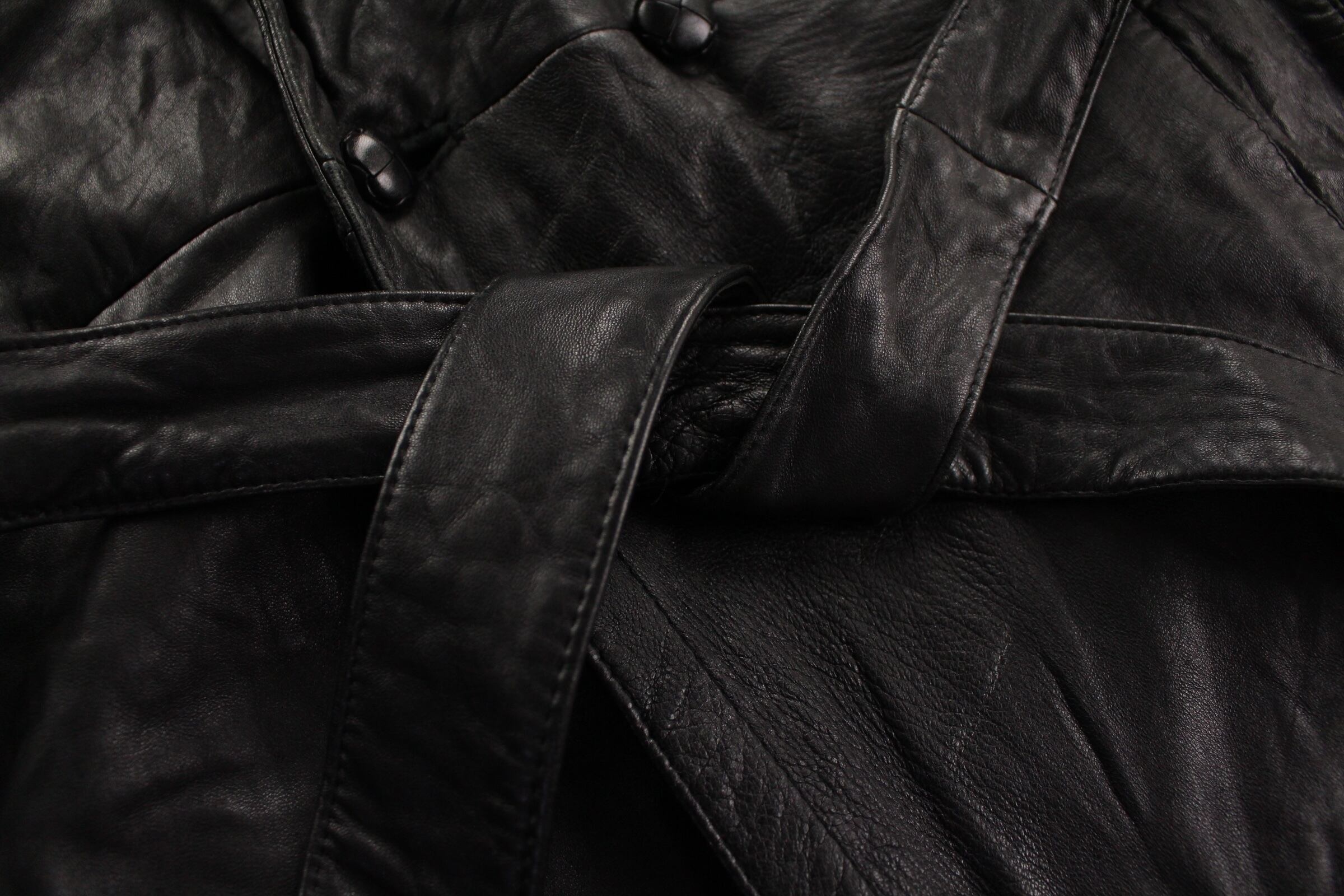 トレンチディテールのラムレザーコート。