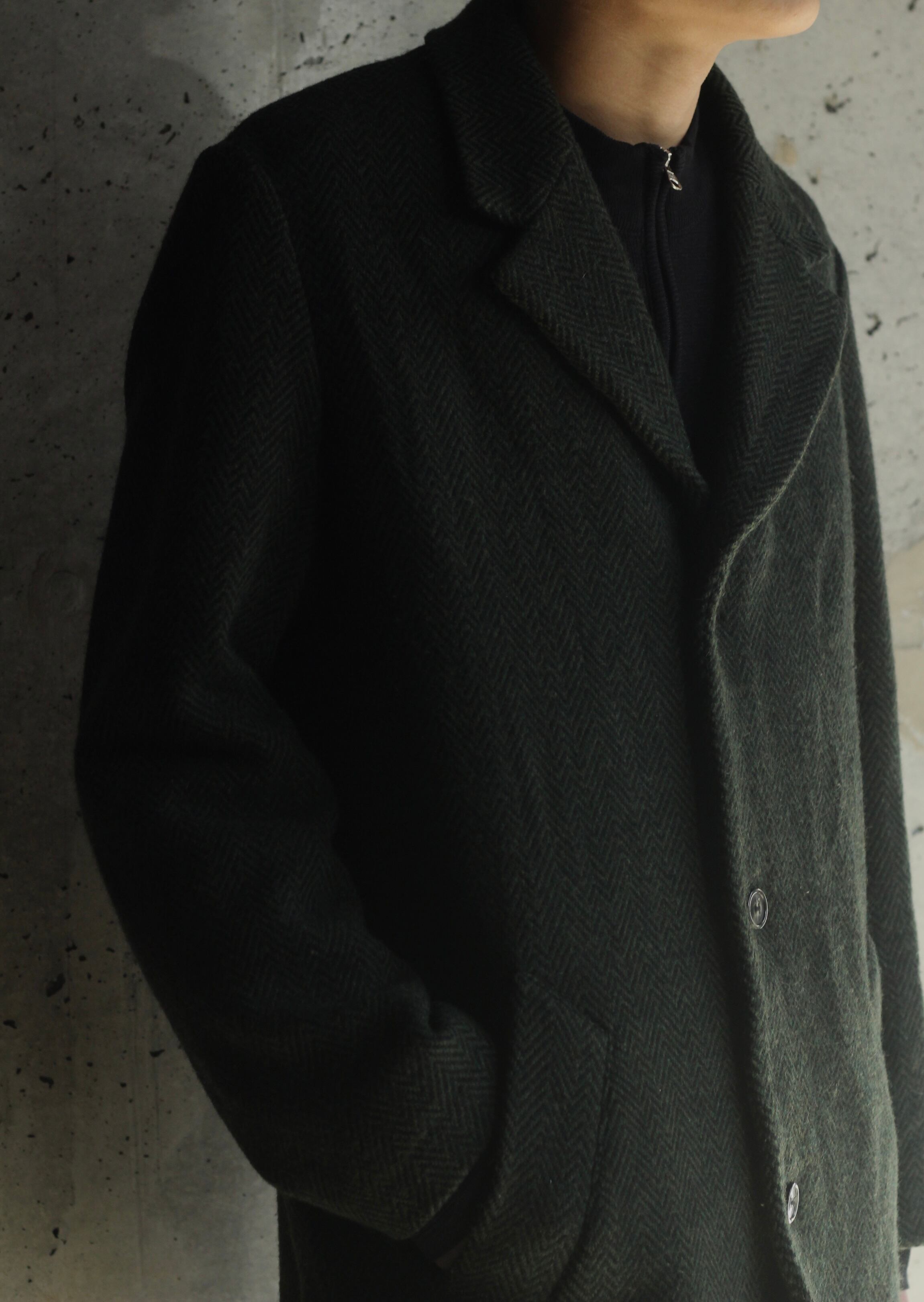 フロントは3ボタンで飽きが来ないクラシカルなシングルチェスター仕様。ウールカシミヤ混紡の毛足長めスペシャルファブリックにより,重たみが無くドレープ感がプラスされ,極上な着心地です。ヘリンボーン柄の特徴的なデザインは,ダークグリーン×ブラックの暗色合わせで悪目立ちせず上品な仕立て。