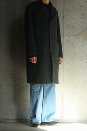 長すぎず短すぎずな,絶妙な丈感に身幅もゆったりとられ,そのままストンと裾に向けて落ち,クラシカルな佇まい。窮屈感を感じさせない空気感を含んだシルエットはあらゆる人,スタイルに馴染みが良くサマになるかと。
