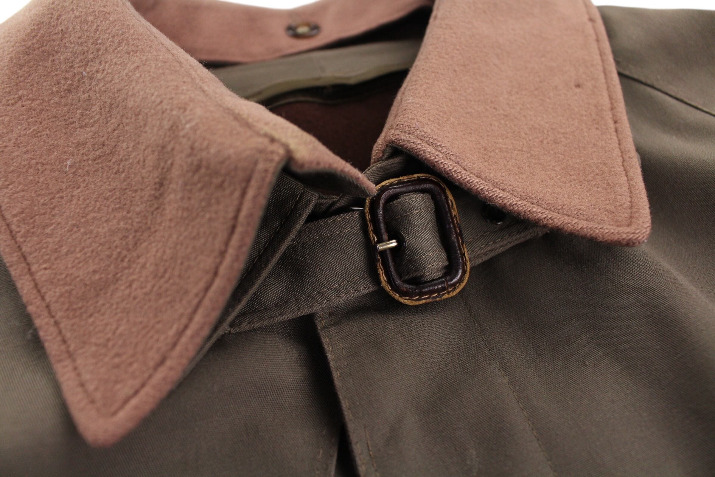 ベルト付きでシルエットも変えれる優秀なコート。ステンカラーの形ながらガンフラップやヨーク等ディテールも特徴的。
