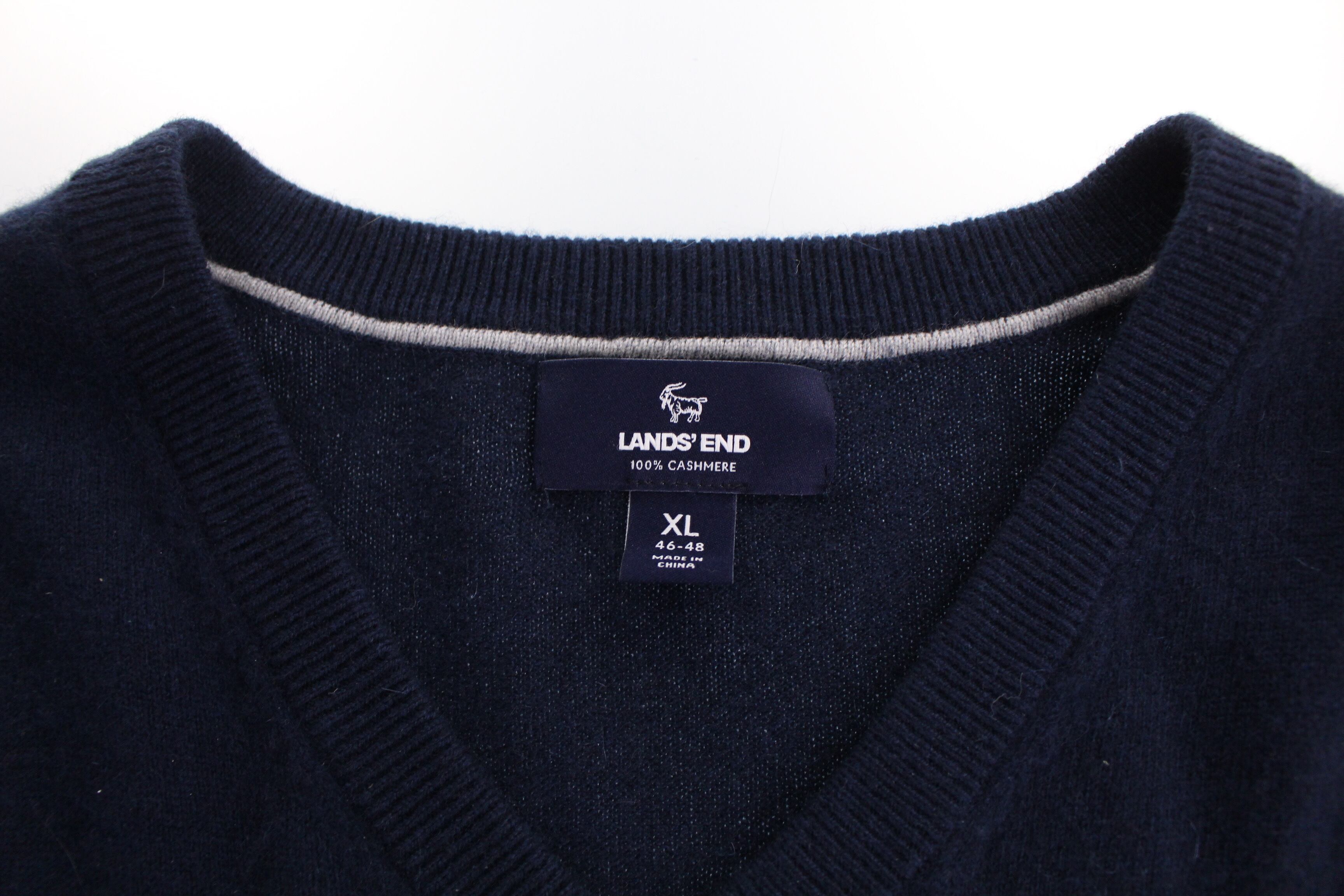 LANDS'END navy color cashmere V-neck Knit