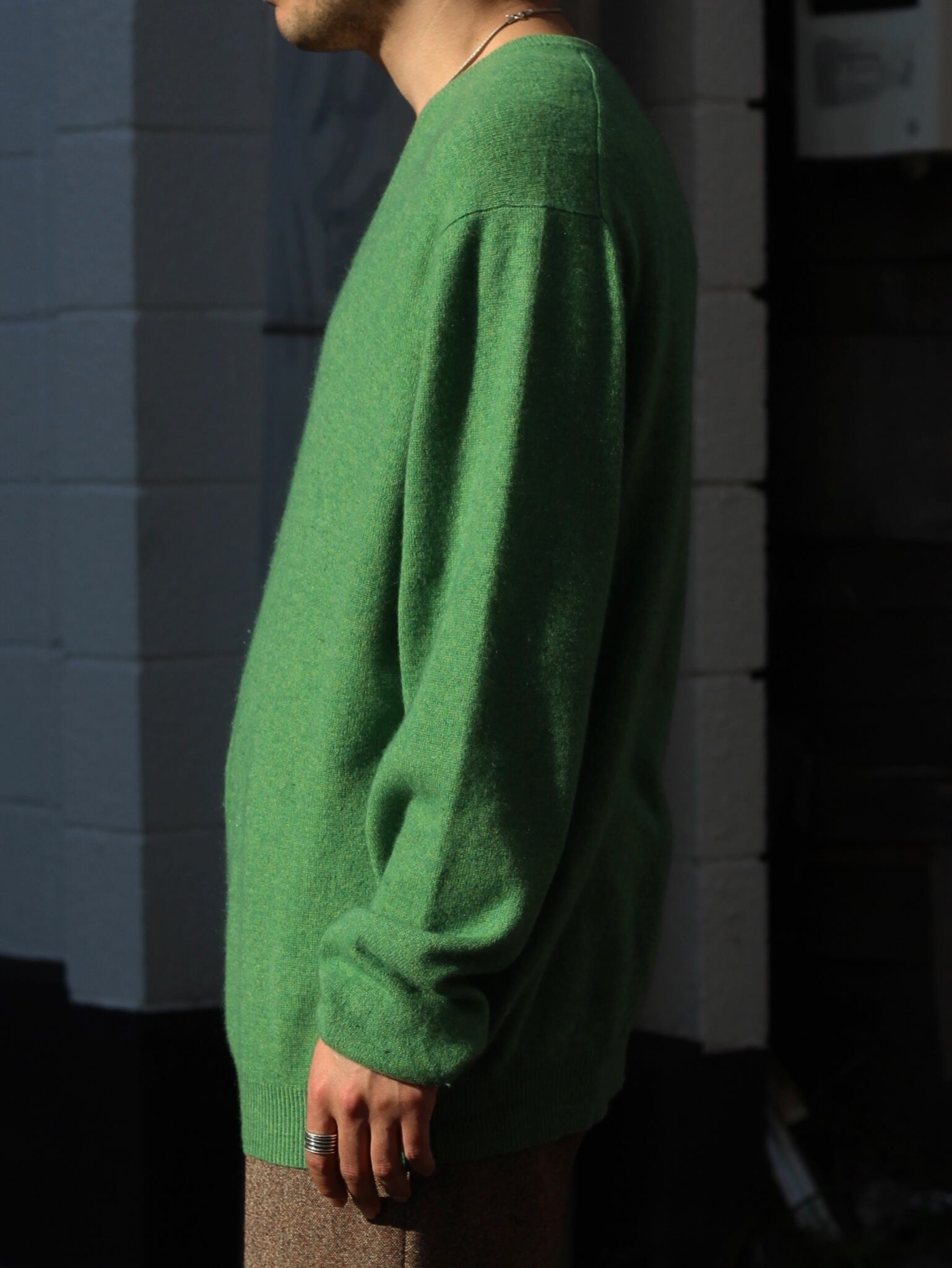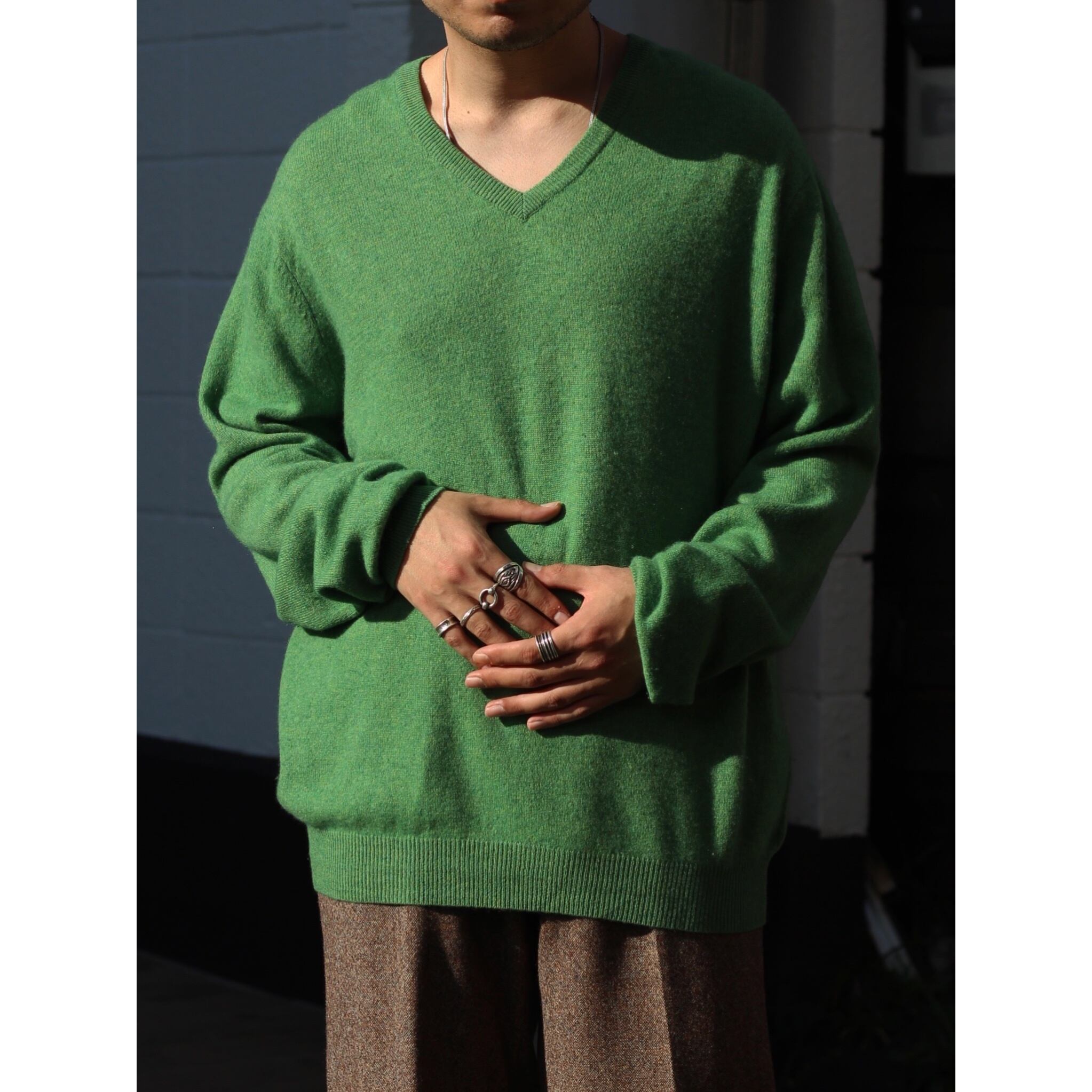 【CUBA】"Lime green color" fabric 100% cashmere v-neck knit -8200-