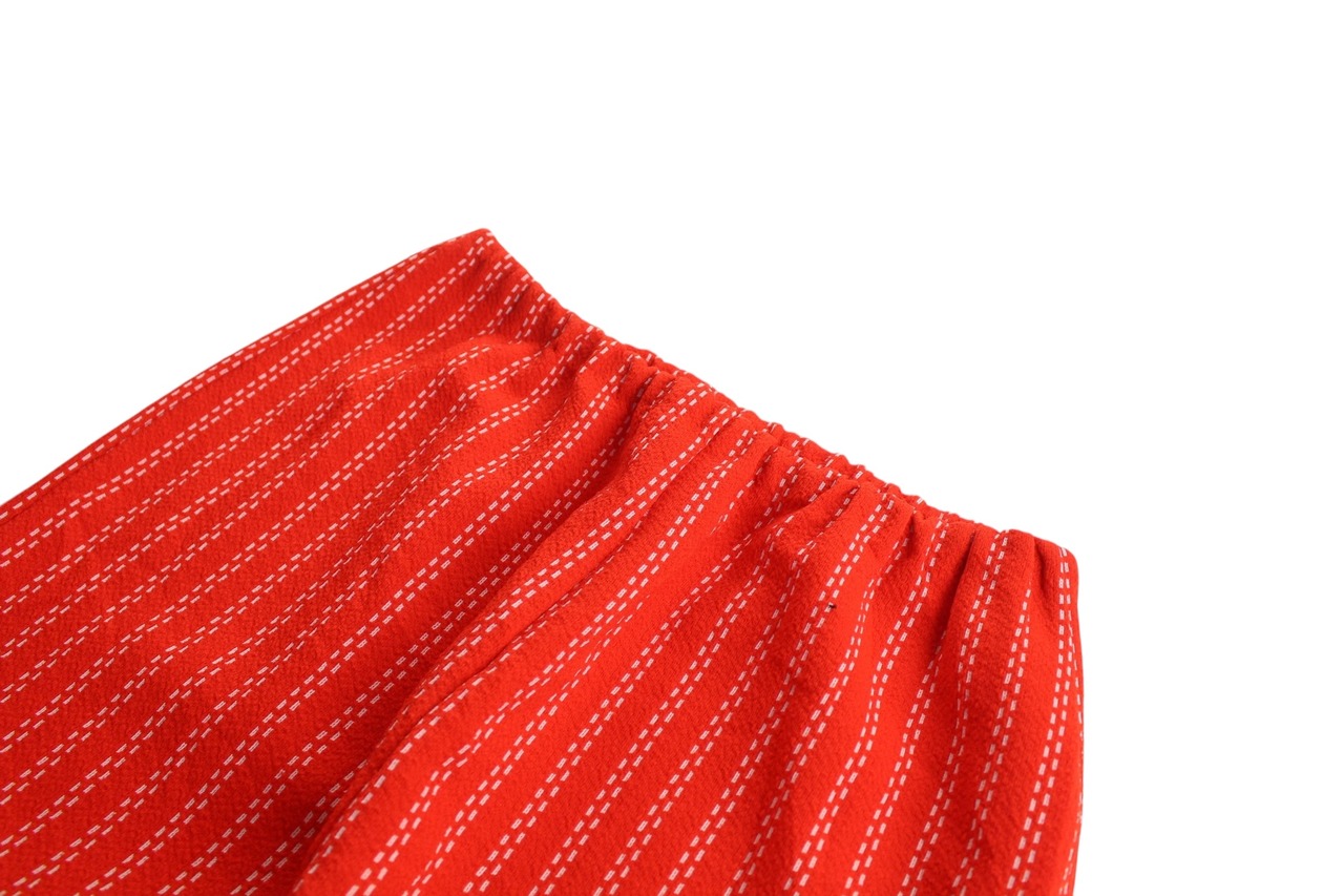 自然なフレアシルエットに点線ストライプがより立体的なシルエットにも◎