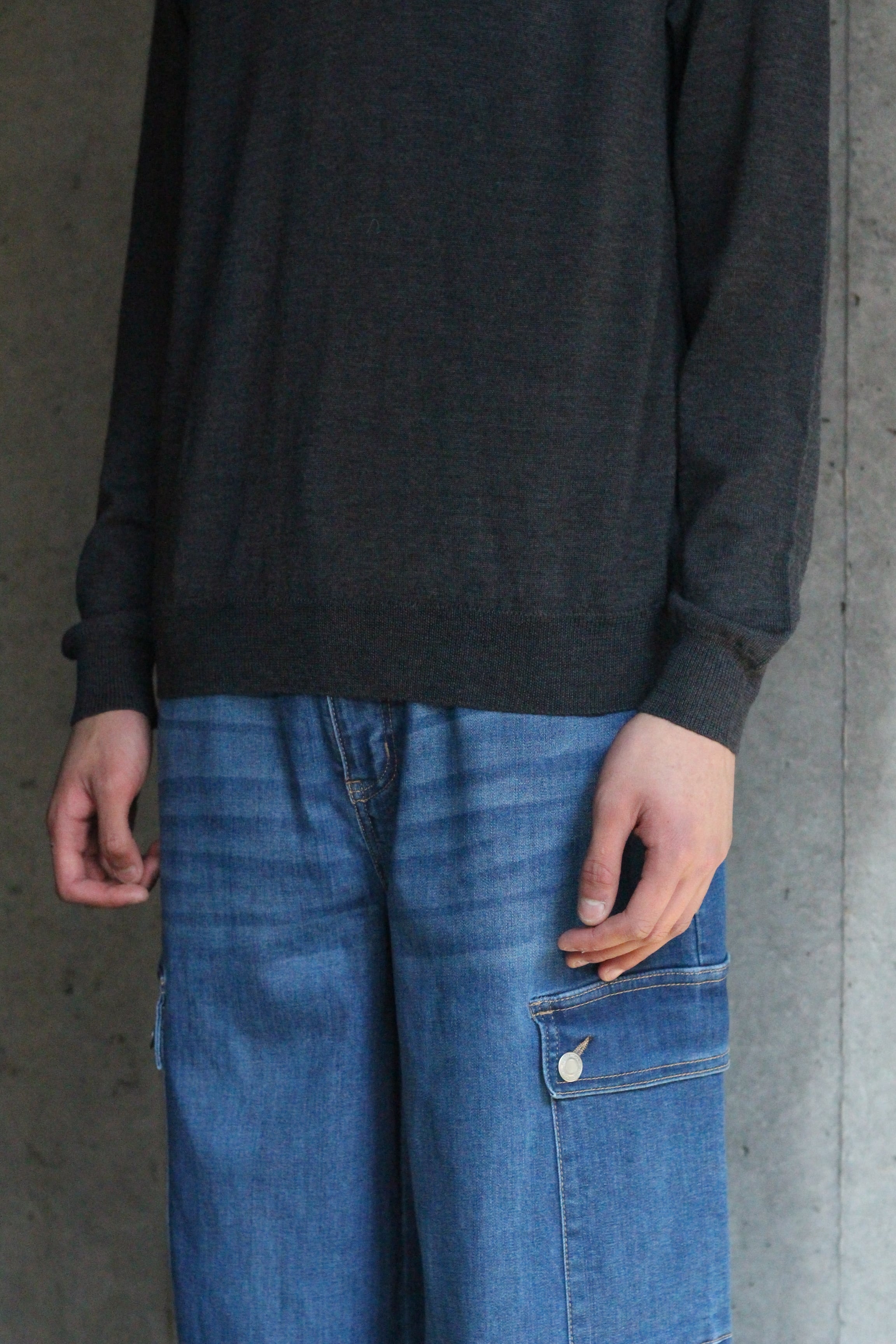 ウールならではの保温性もありつつサイズ表記Sと全体的なタイトな作りでジャケットやアウターのインナーとしても抜群なやつ。