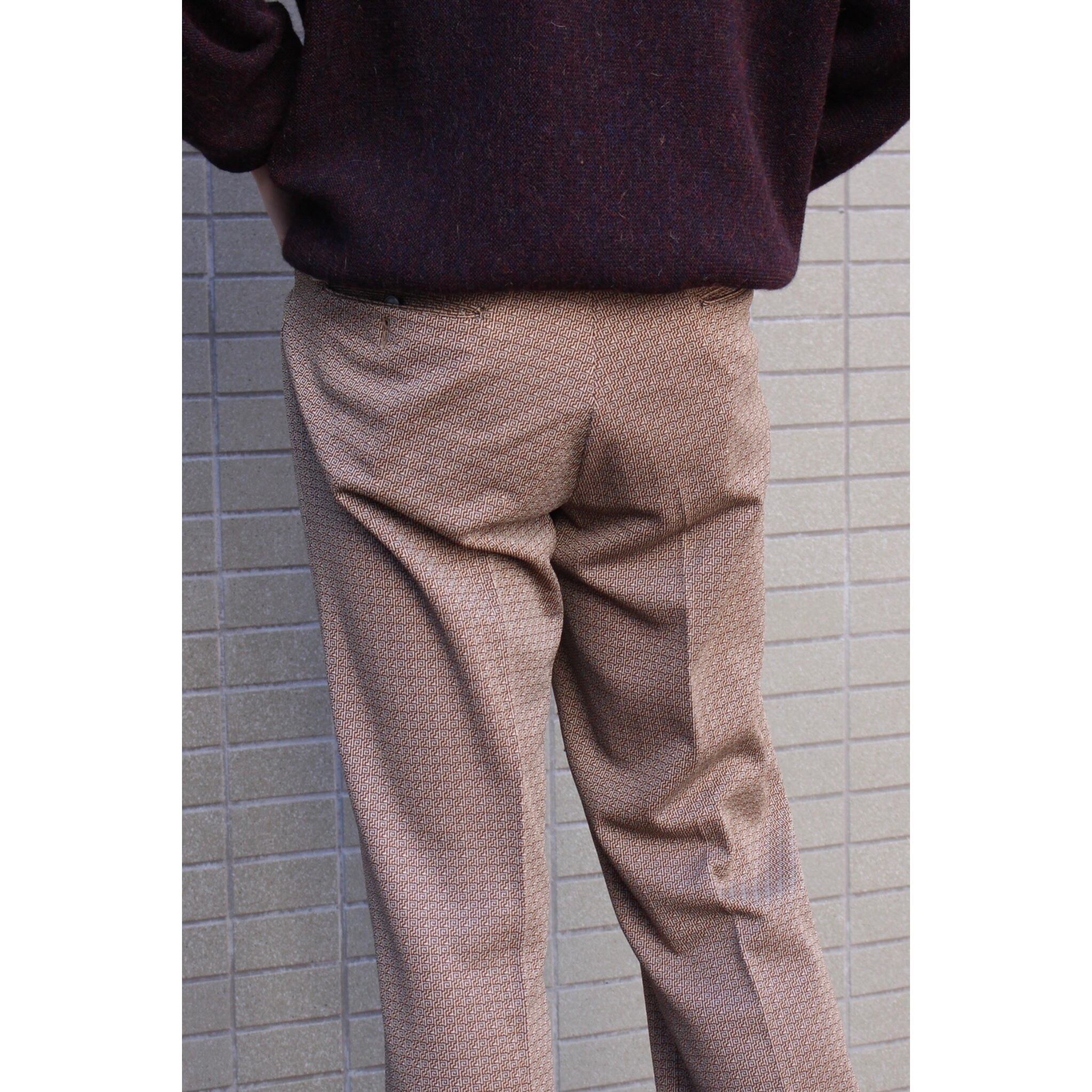 【COU】1970’s art pattern no tuck stretch flare slacks-5051-