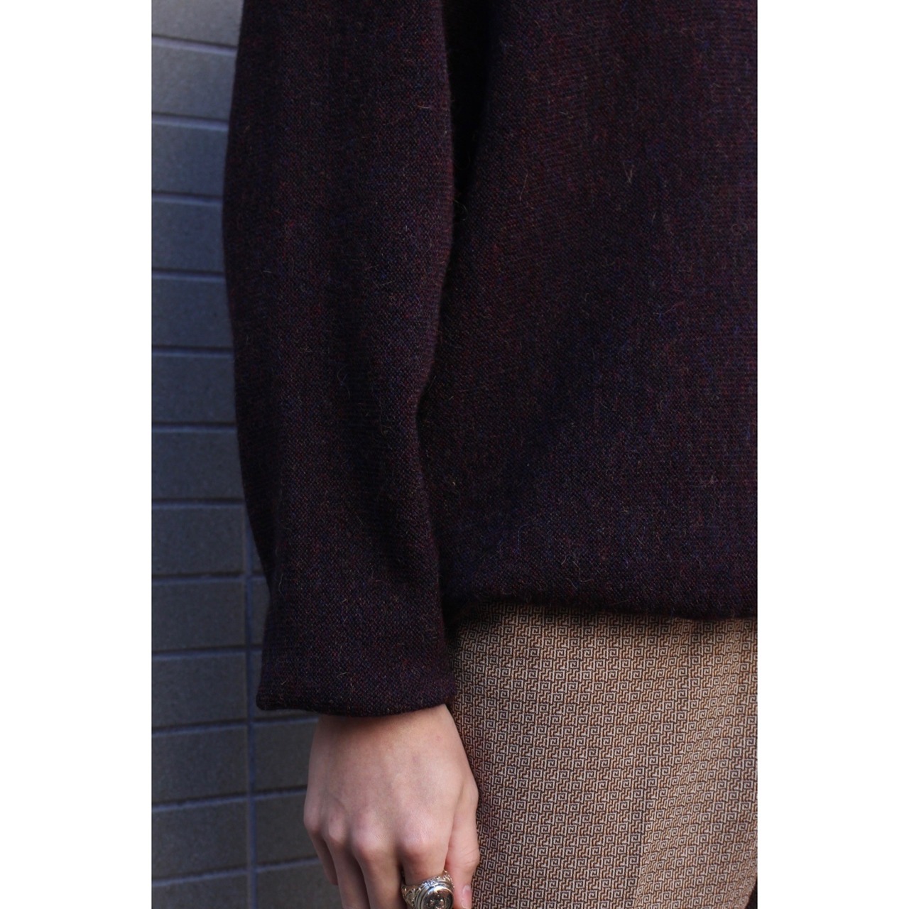 ボルドー味の落ち着いたカラーは大人で知的な印象。