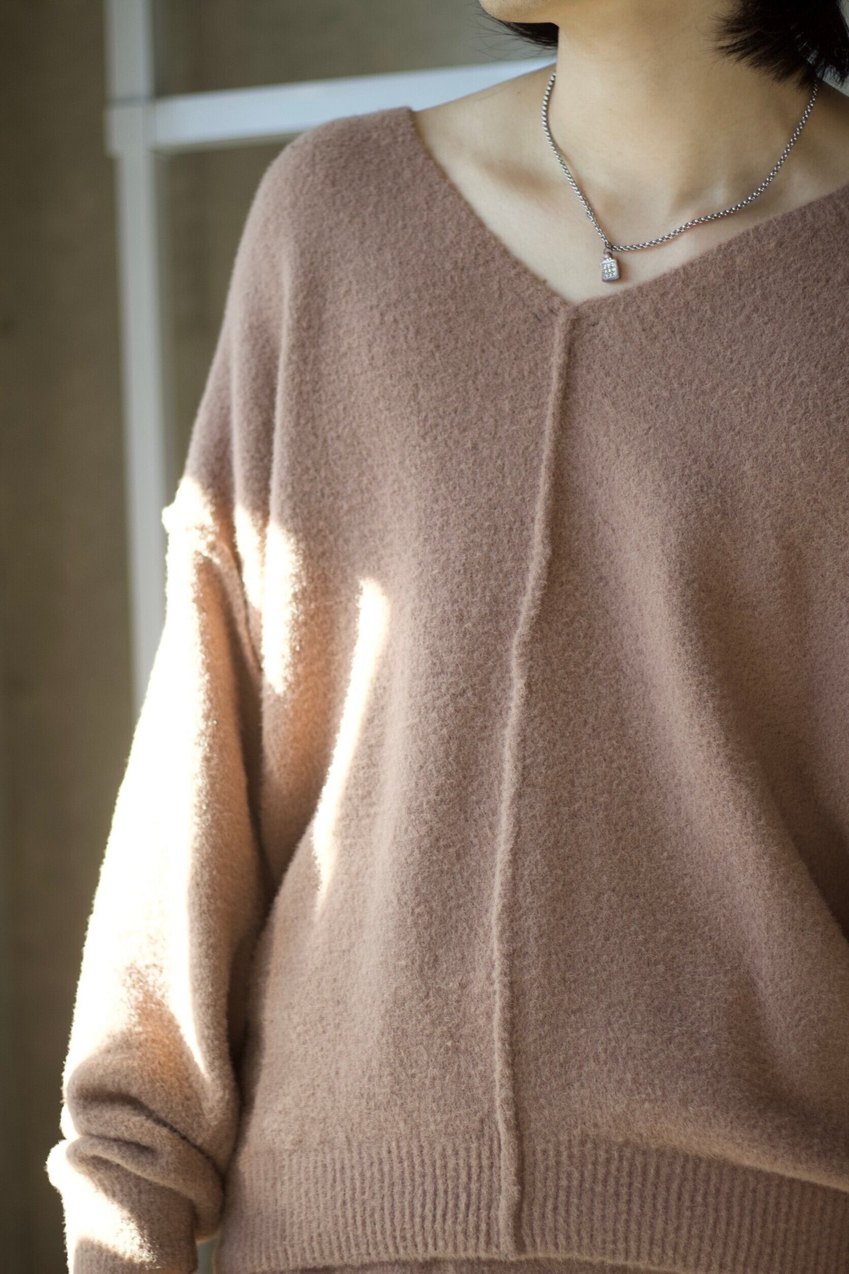 深めな色気のあるVネックのニットプルオーバーに