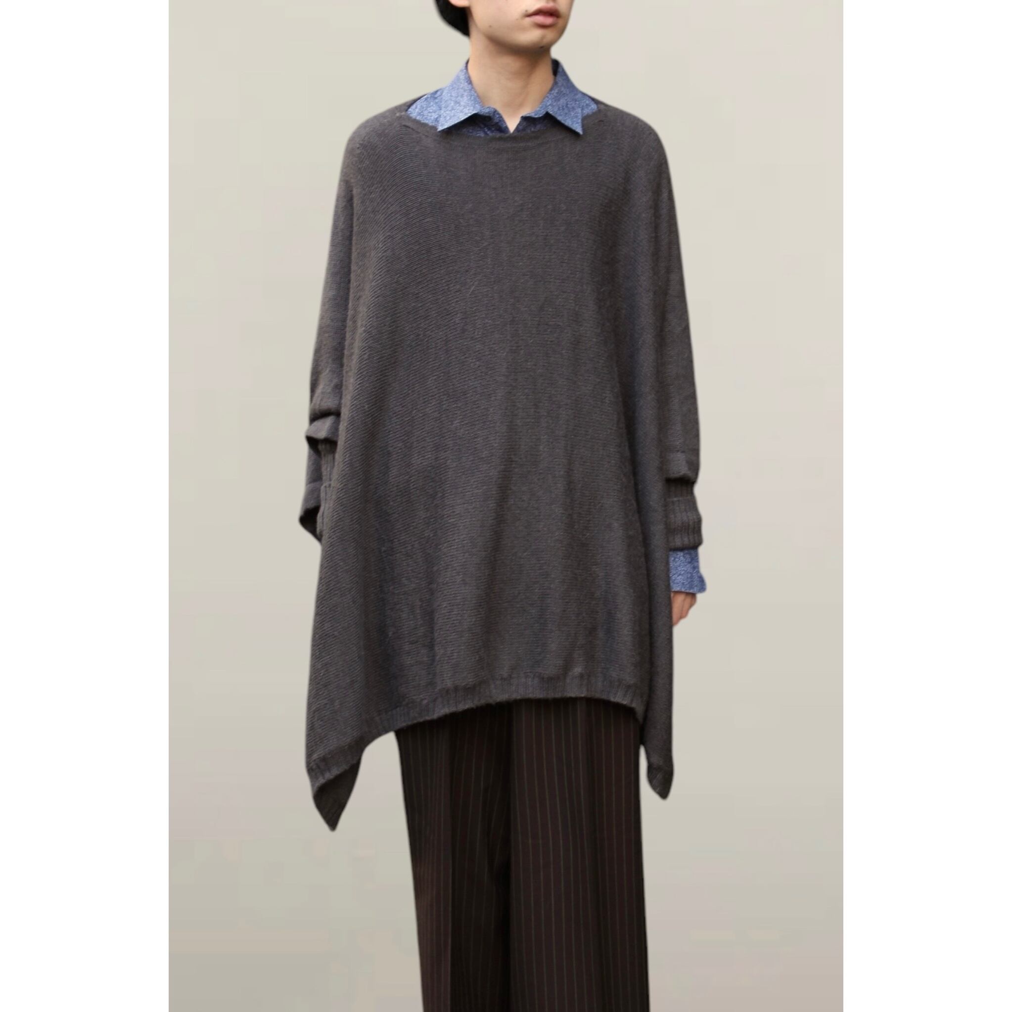 スーパーワイドな身幅で着用できるニット。圧倒的な存在感がありシャツ等の上からレイヤードでお洒落にスタイリングを組める1着だと思います☺︎