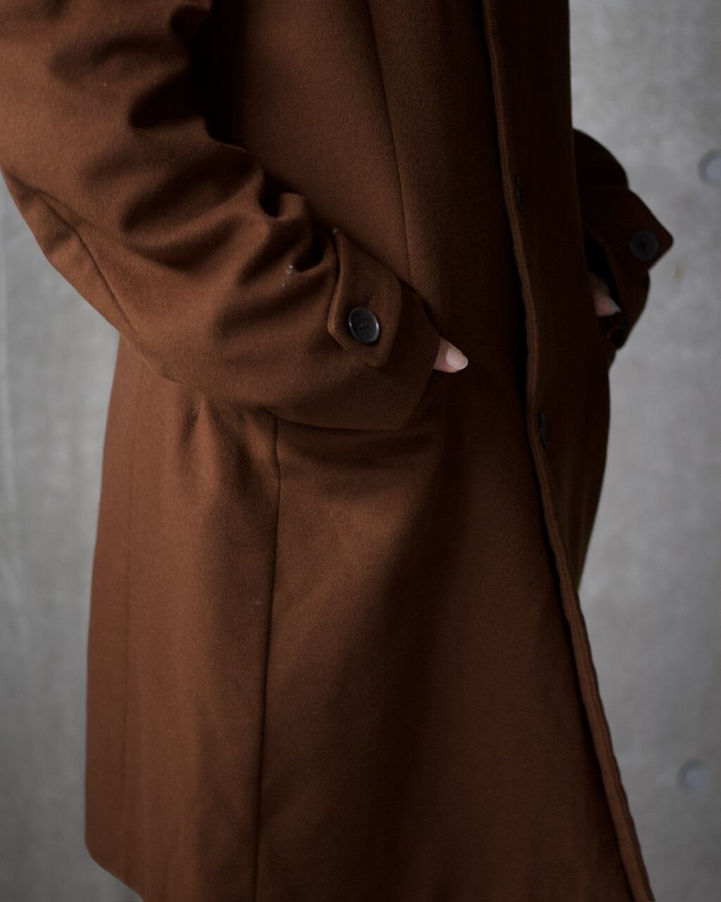 第一ボタンを開けていただくとチェスターコートみたいなる二面性のデザイン