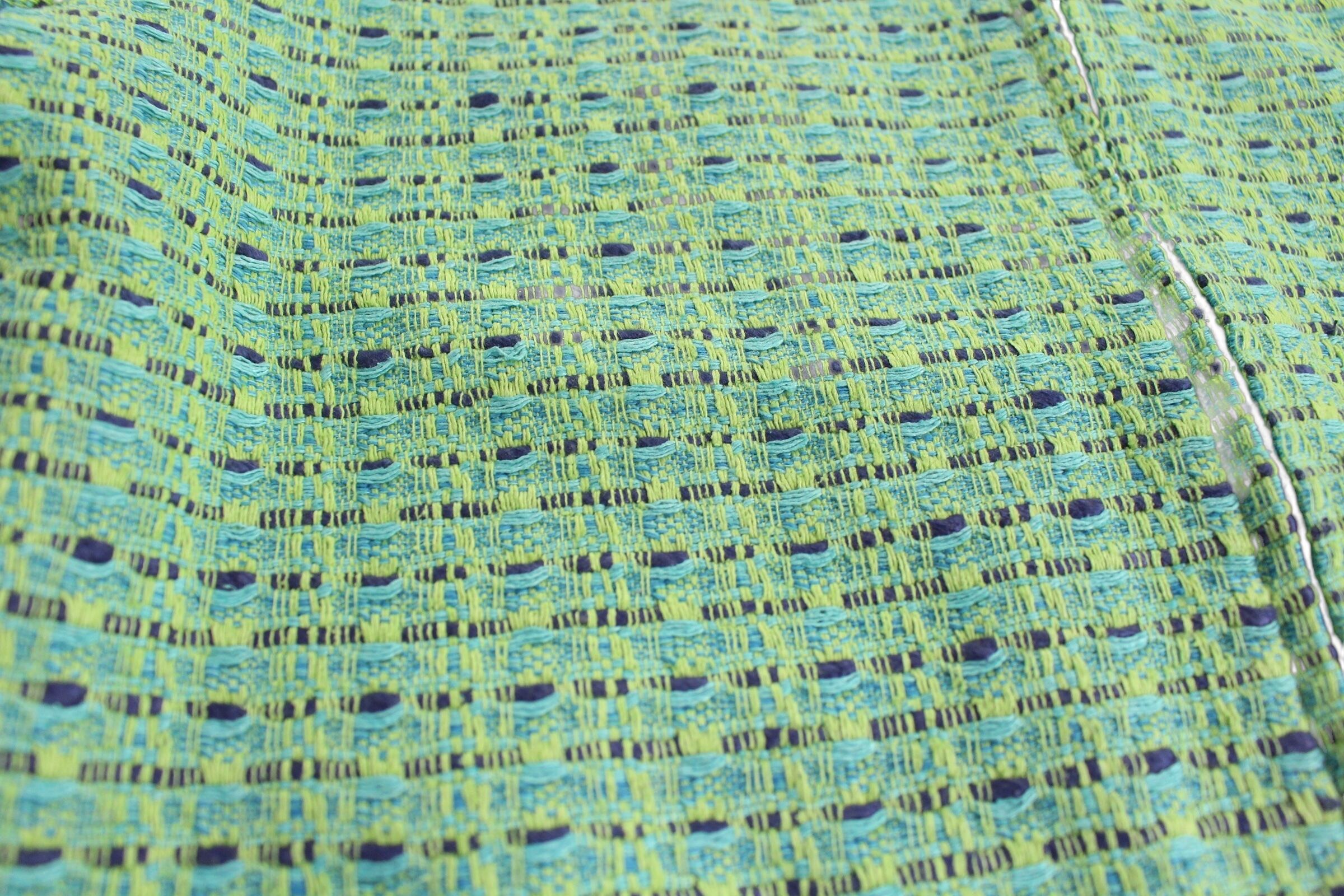 糸を何重に編み込んで作られた生地。カラーリングもライムグリーン、ミントと爽やかな配色で存在感のある1枚です☺︎