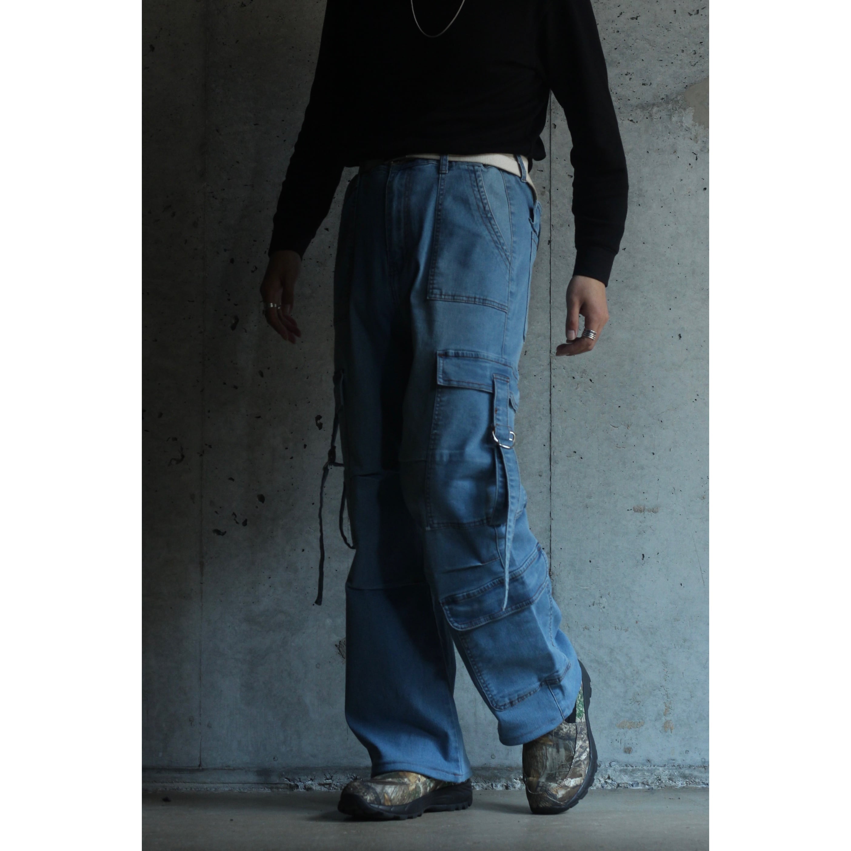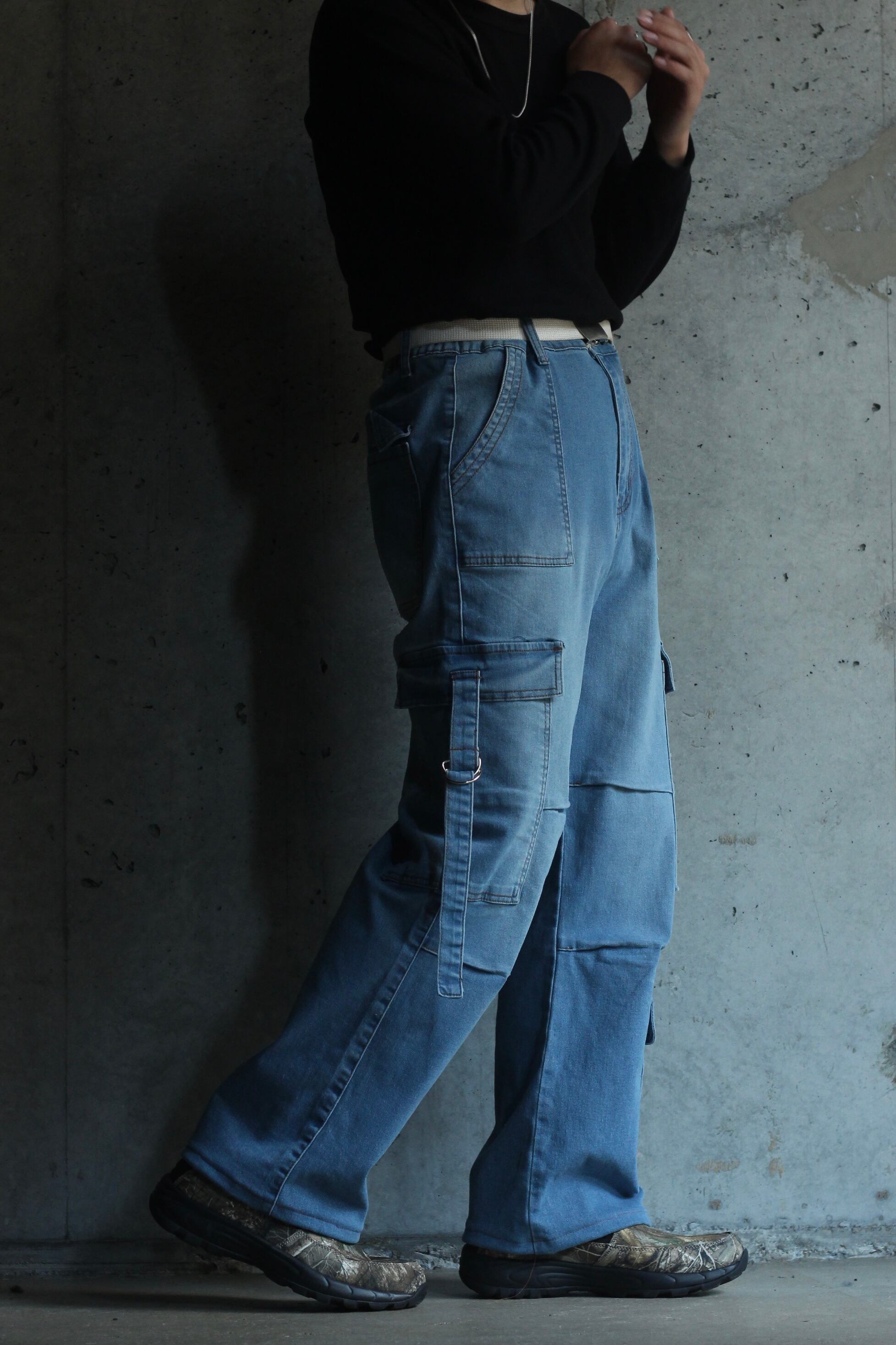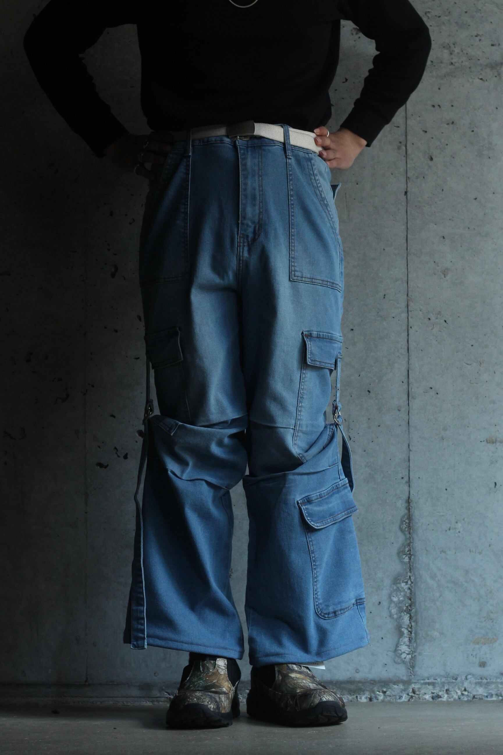 wide straight cargo gimmick denim easy pants