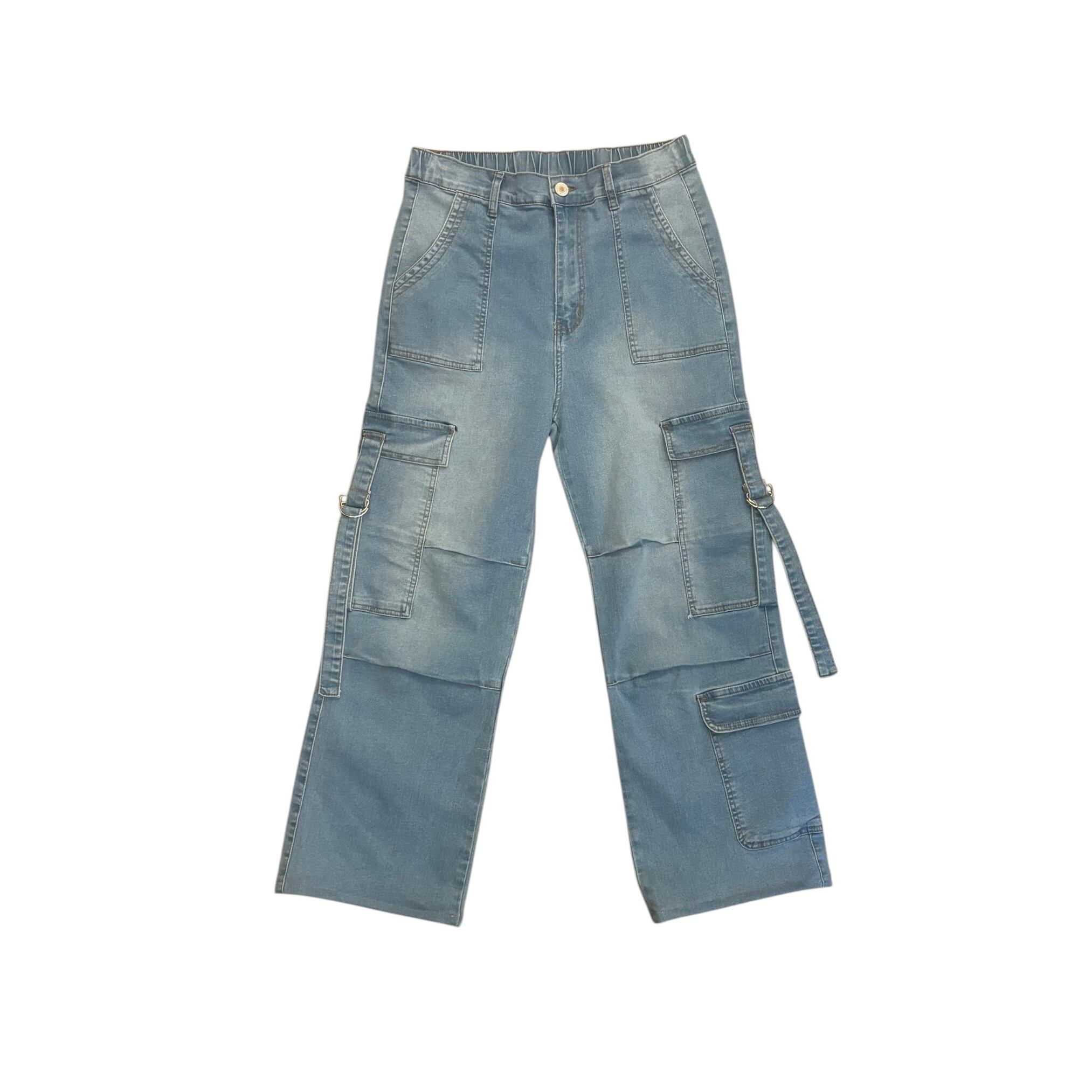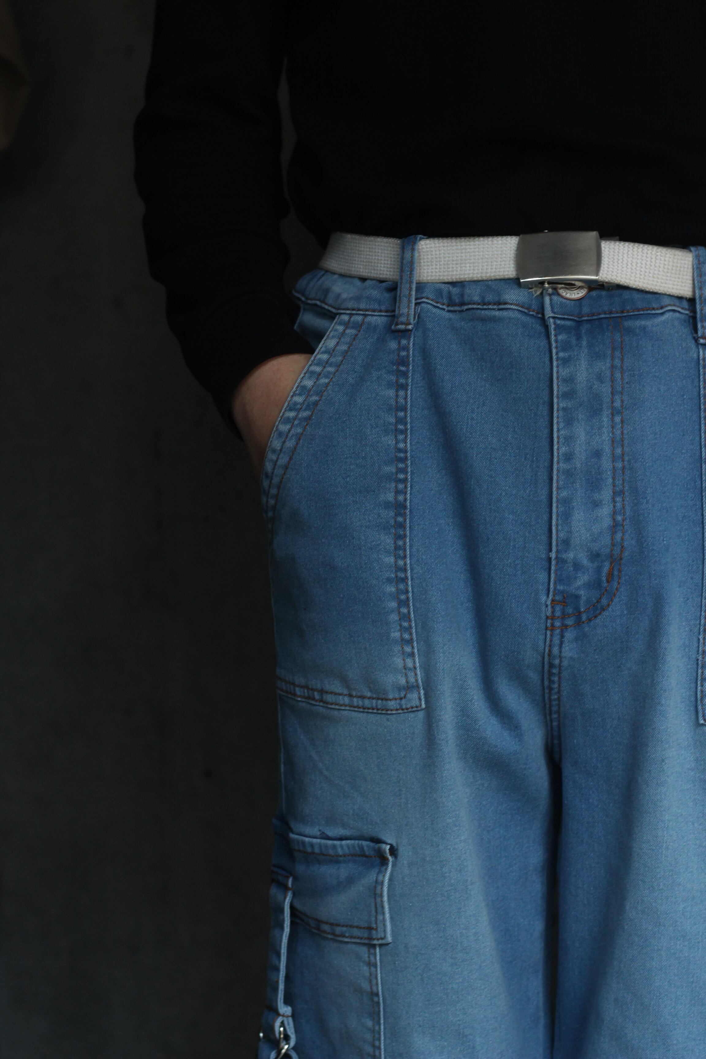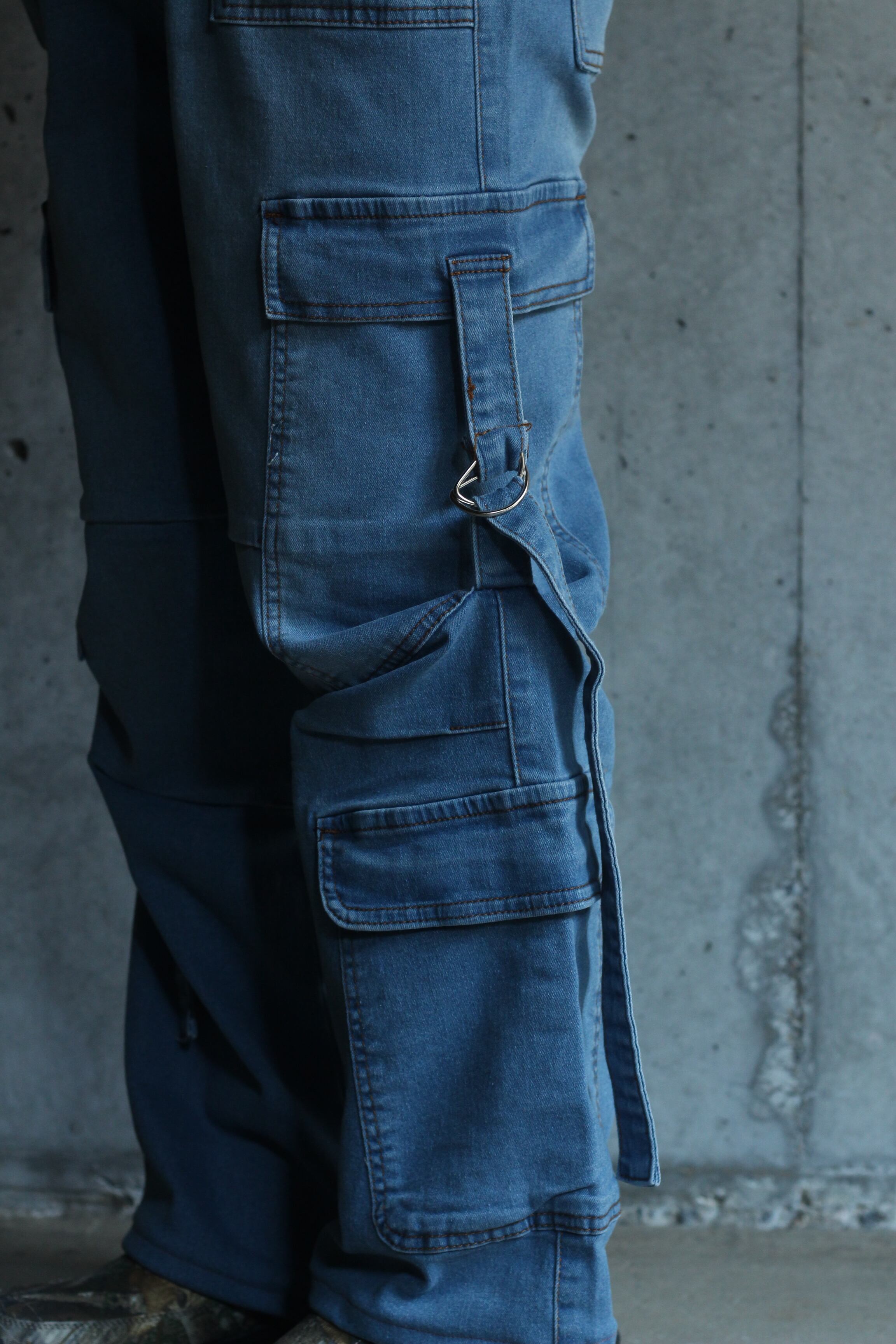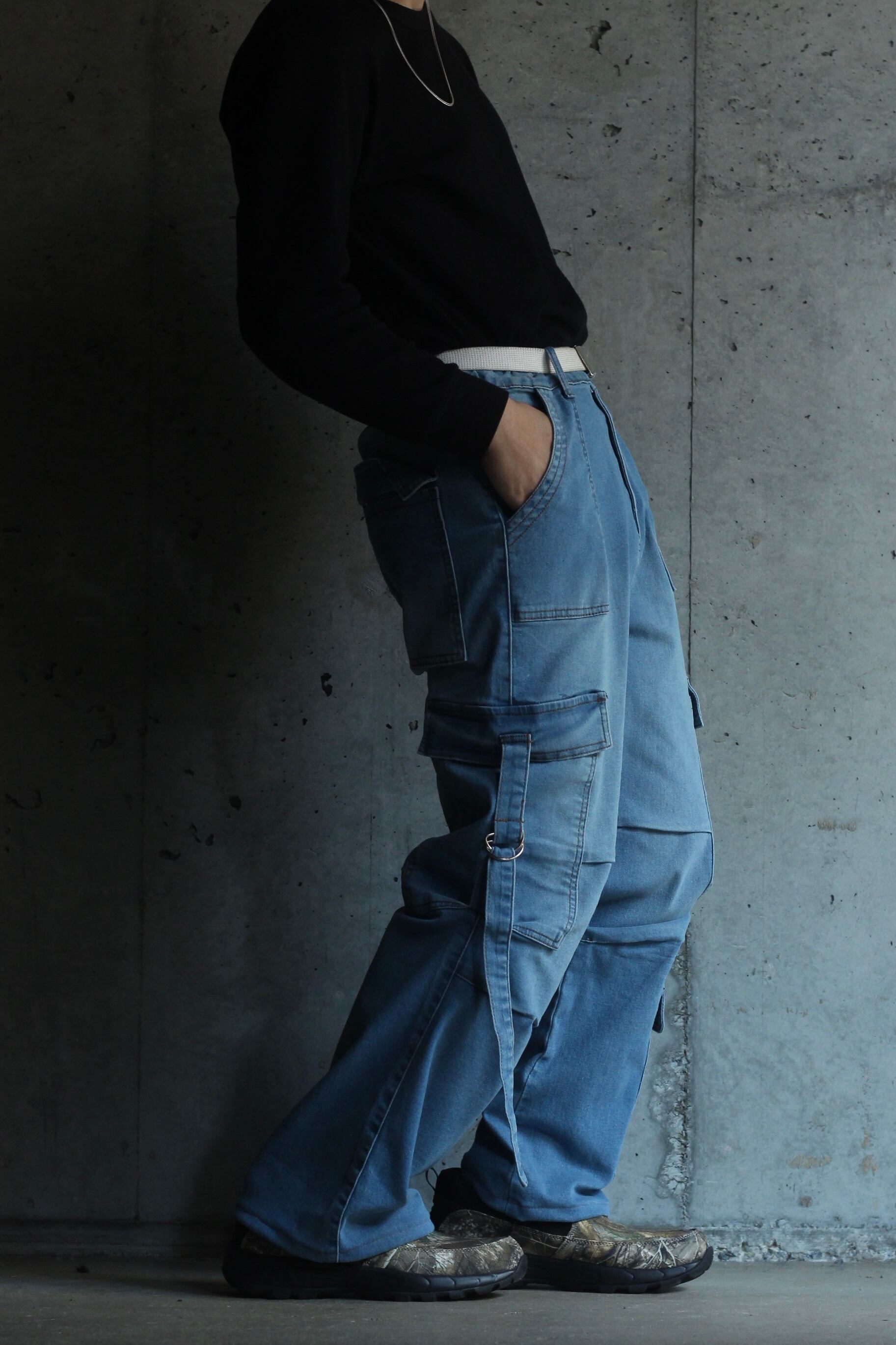 wide straight cargo gimmick denim easy pants