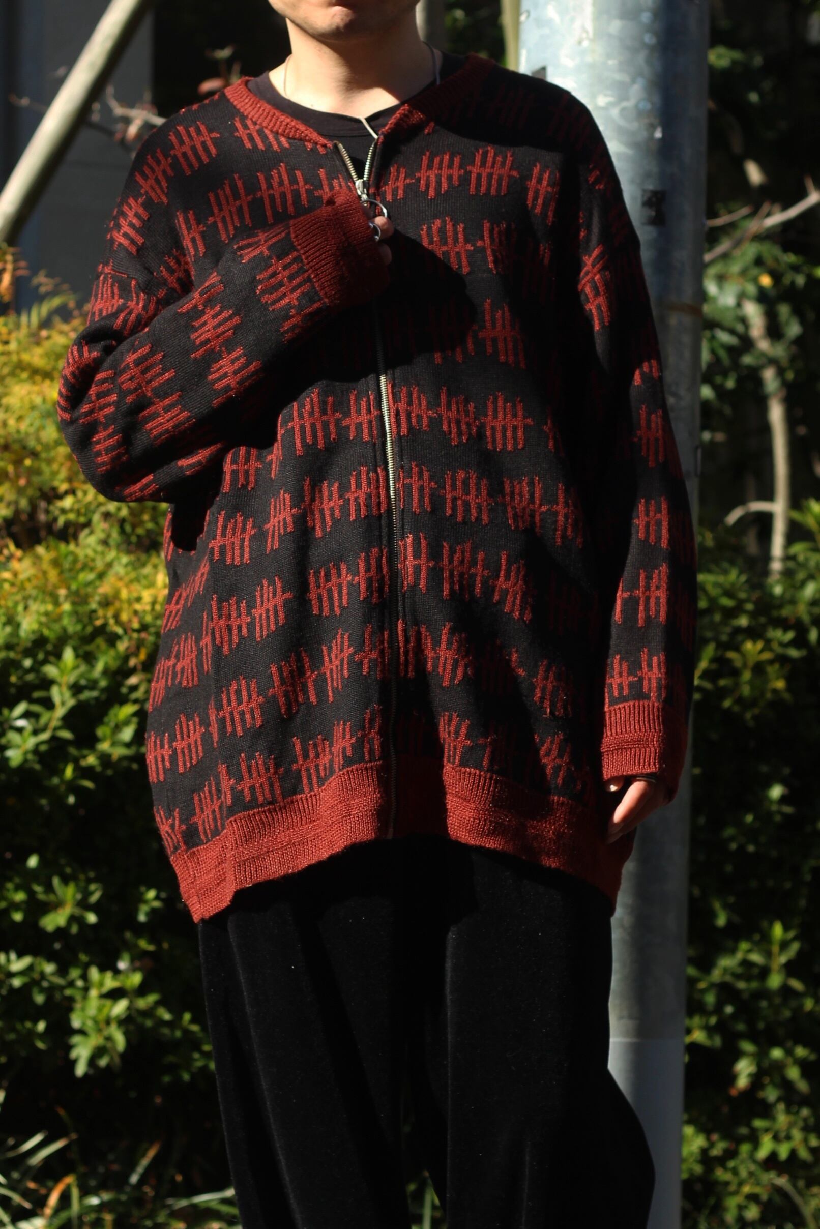 Vintage all-over pattern full zip sweater【COOT-3242】