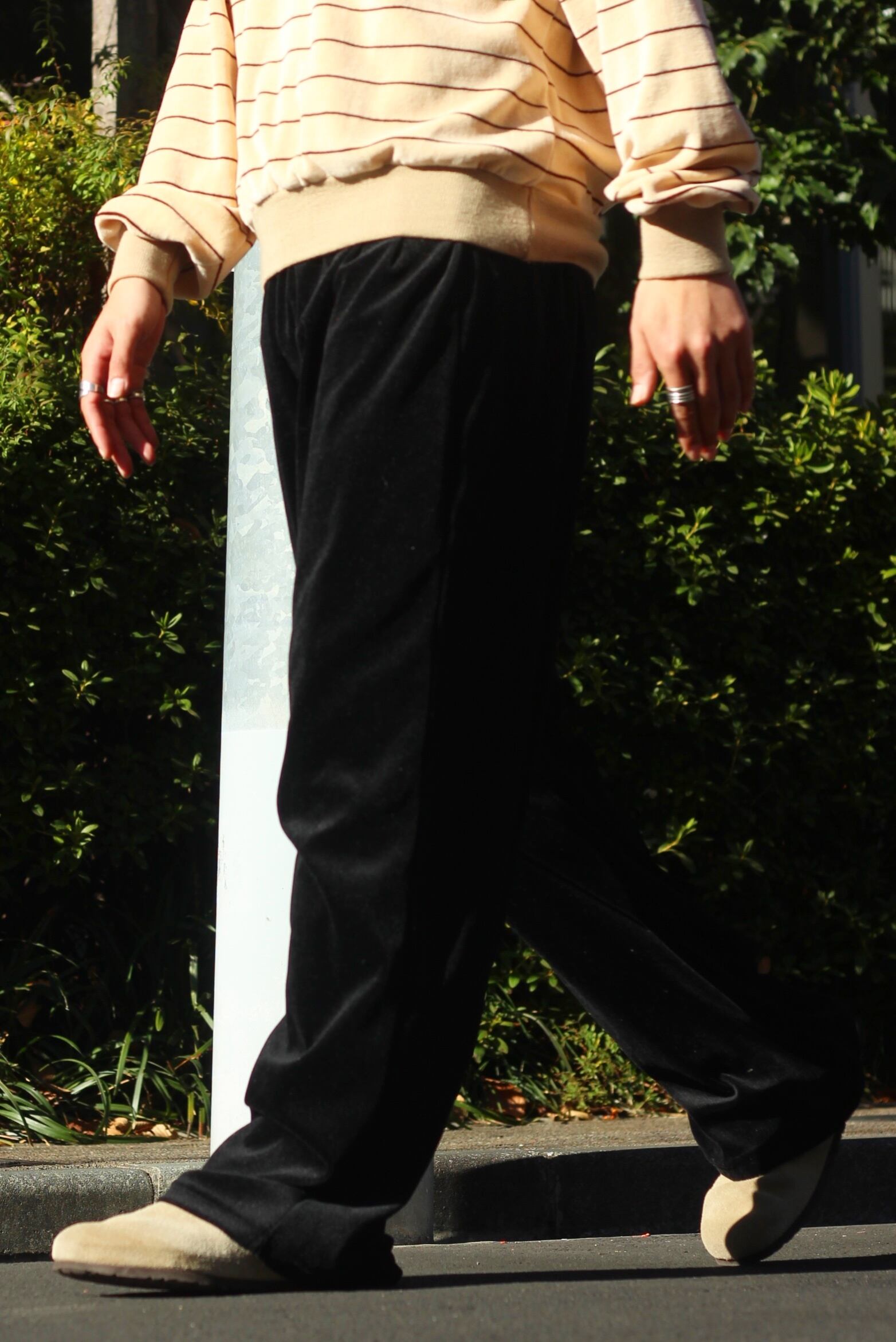 ウエストが気になる方は、ウエストにドローコードの紐を後付けで入れて履きやすくするのも良いですし、ウエスト位置からベルトを付けてもよろしいかと☺︎