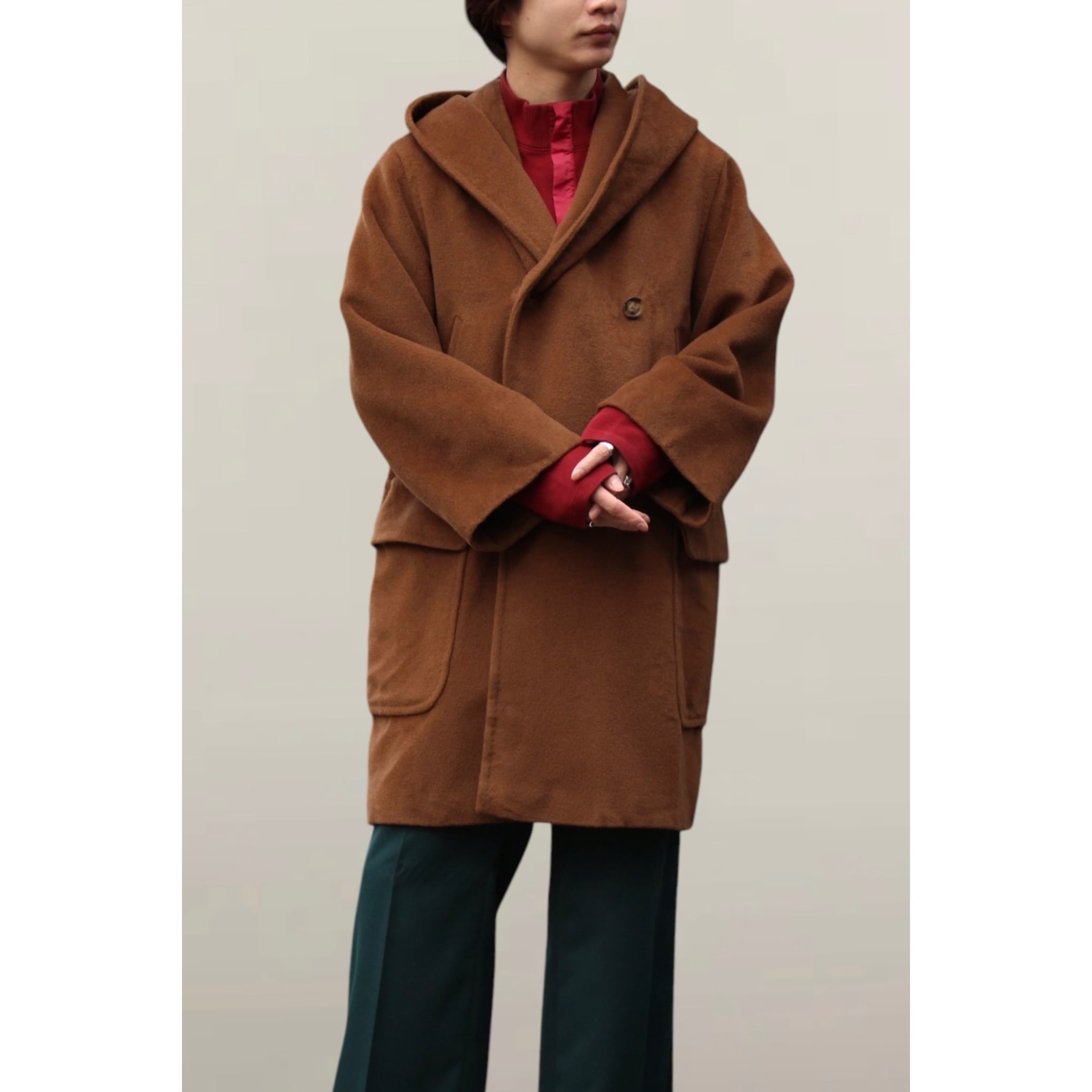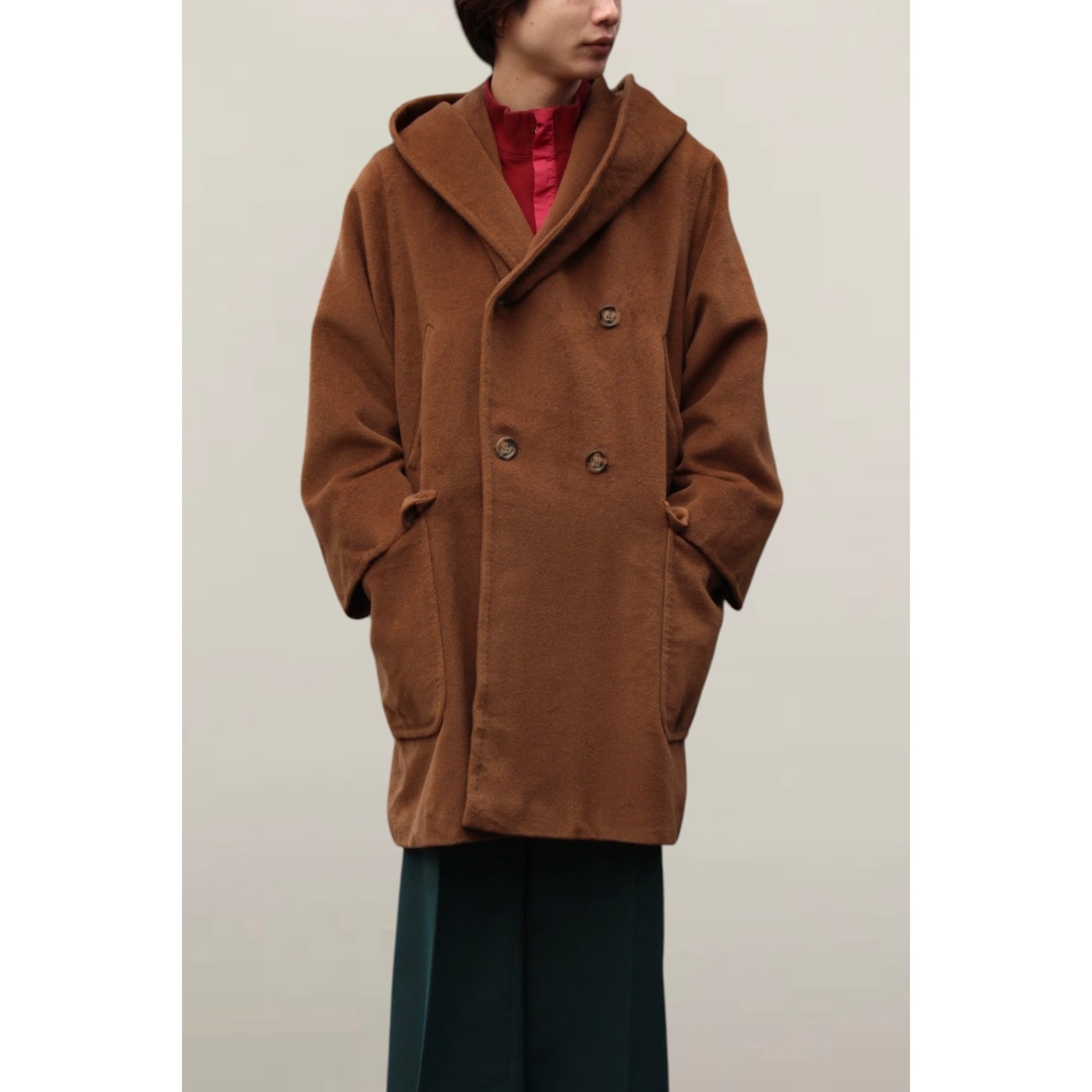 1990's〜"Max Mara" cashmere mix hooded design half coat made in ITALY【MM-11896】