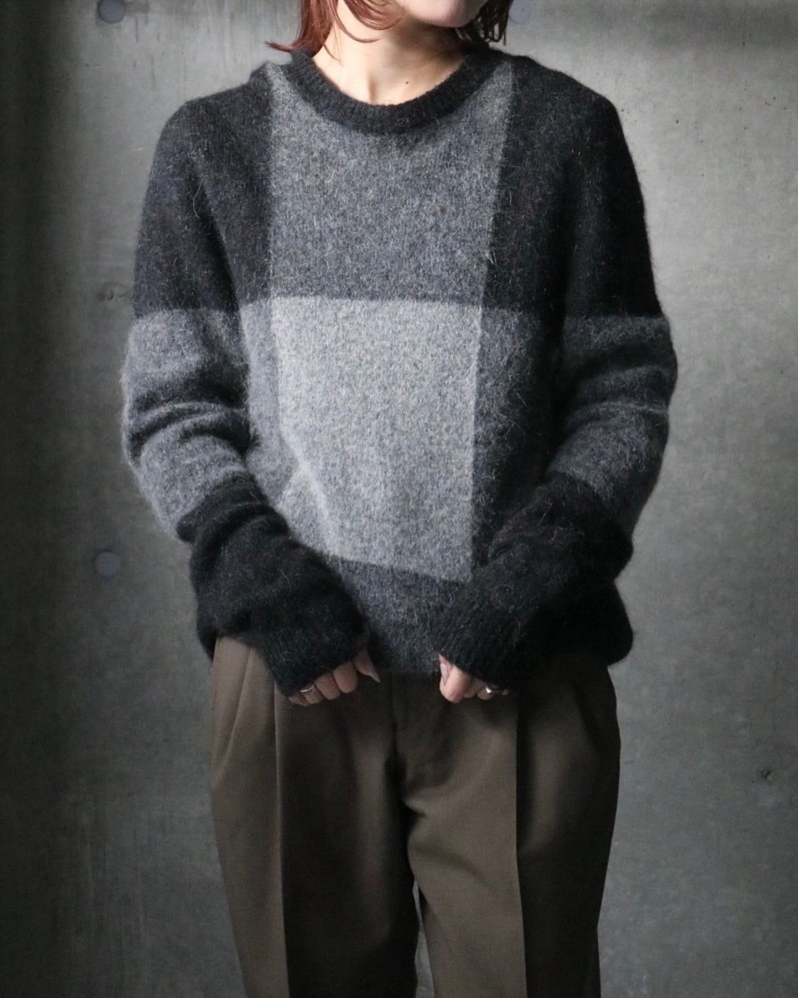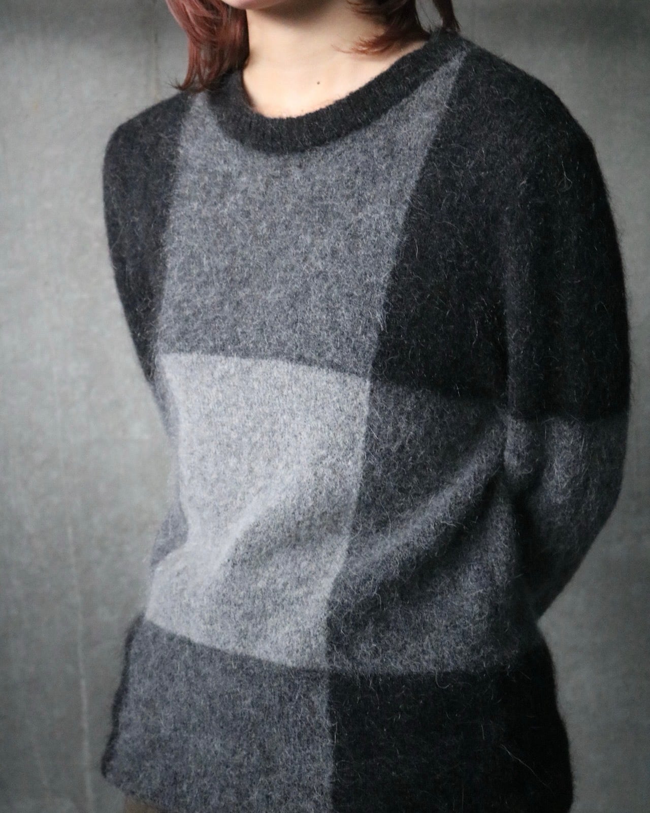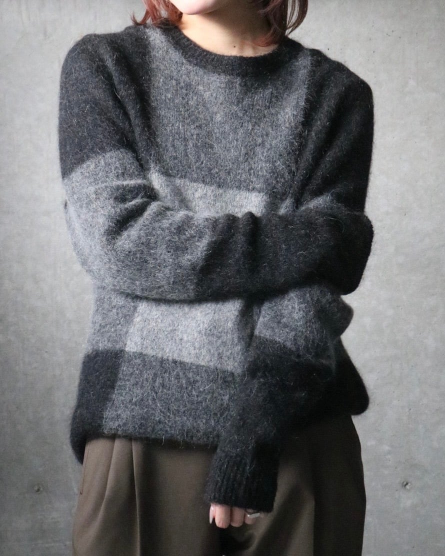 DKNY mohair mix block check Knit made in italy 【MM-10067】