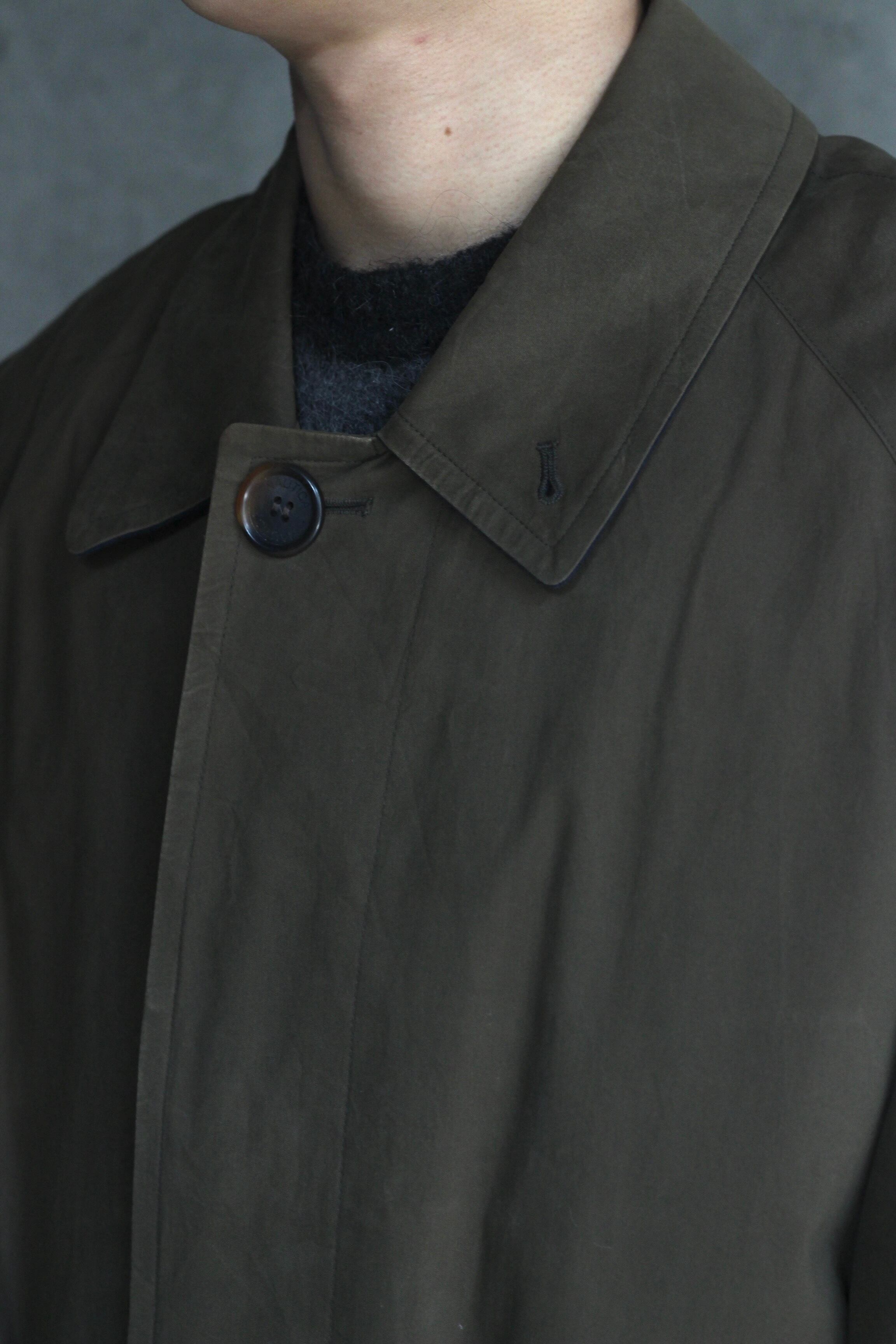肩はラグランスリーブにより流れる様に馴染み,程良く肉厚な生地感が裾に向かって垂れるよう落ちる色気のある雰囲気。そのファブリックを存分に味わえるルーズなサイズでの一着。