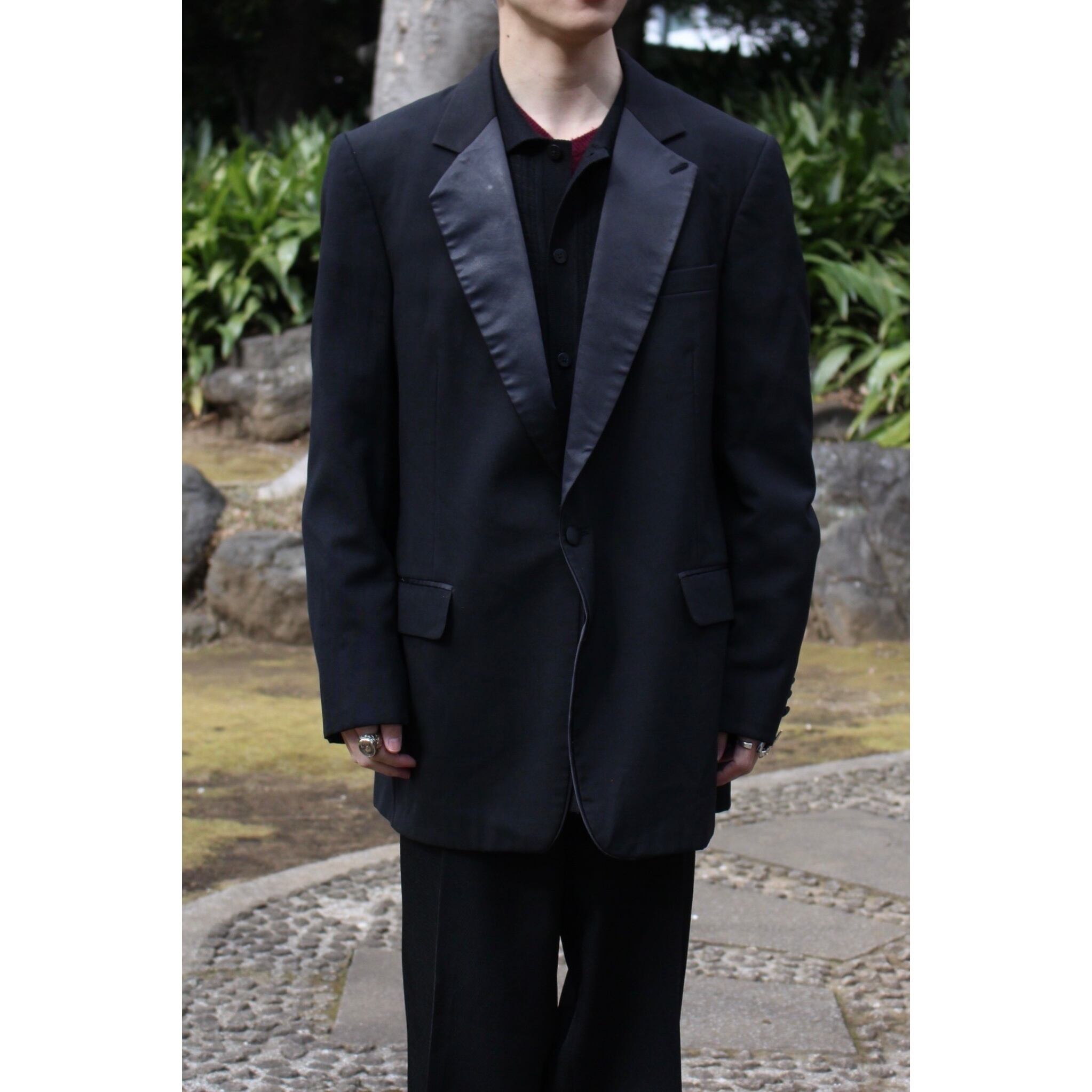 【COU】1980’s "Christian Dior" lapel satin switching single tailored jacket-5087-