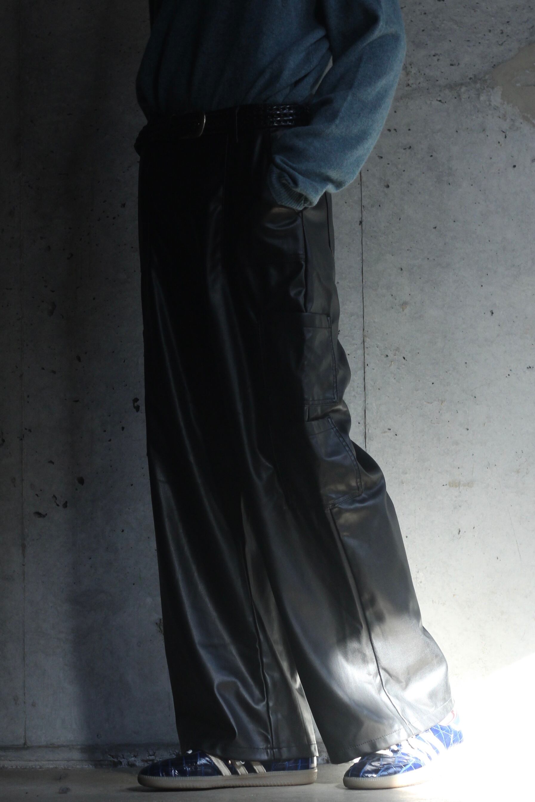 【FIFTY-FIFTY】NO BOUNDARIES fake leather wide flare easy pants -10077-