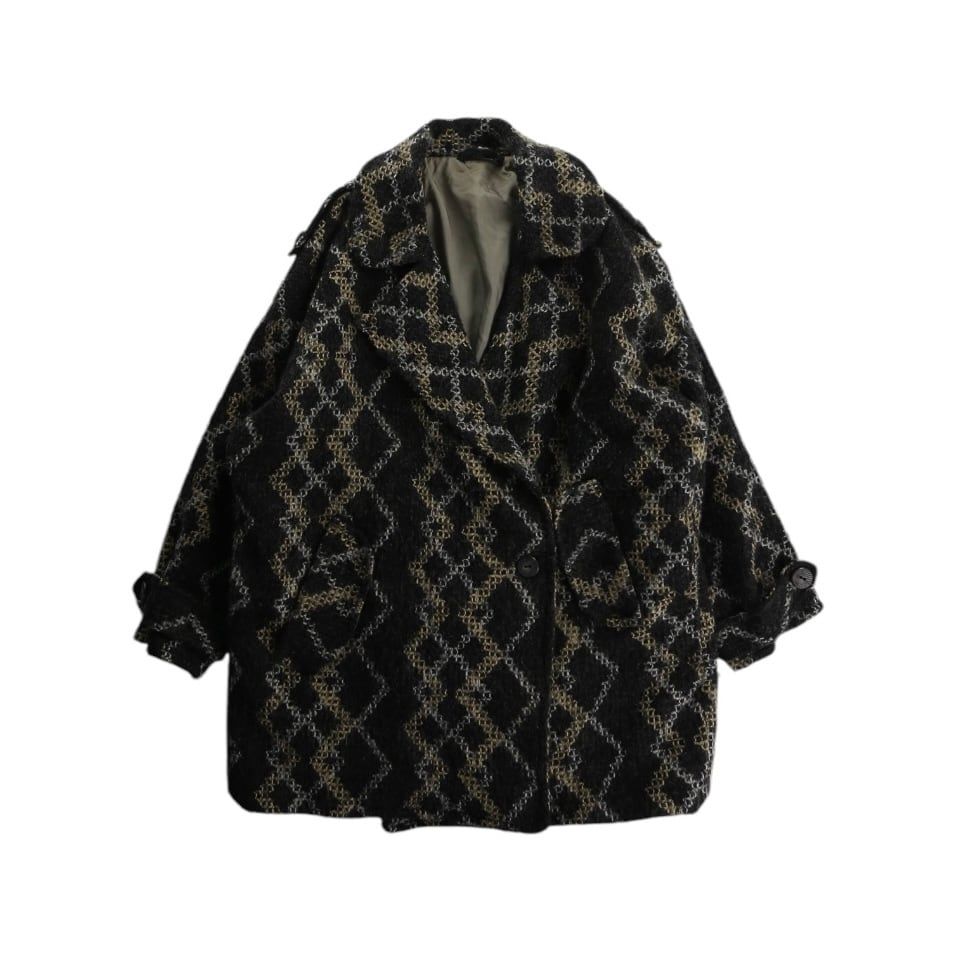 wool mohair mix single tweed pattern half coat【OTTK-5096-】