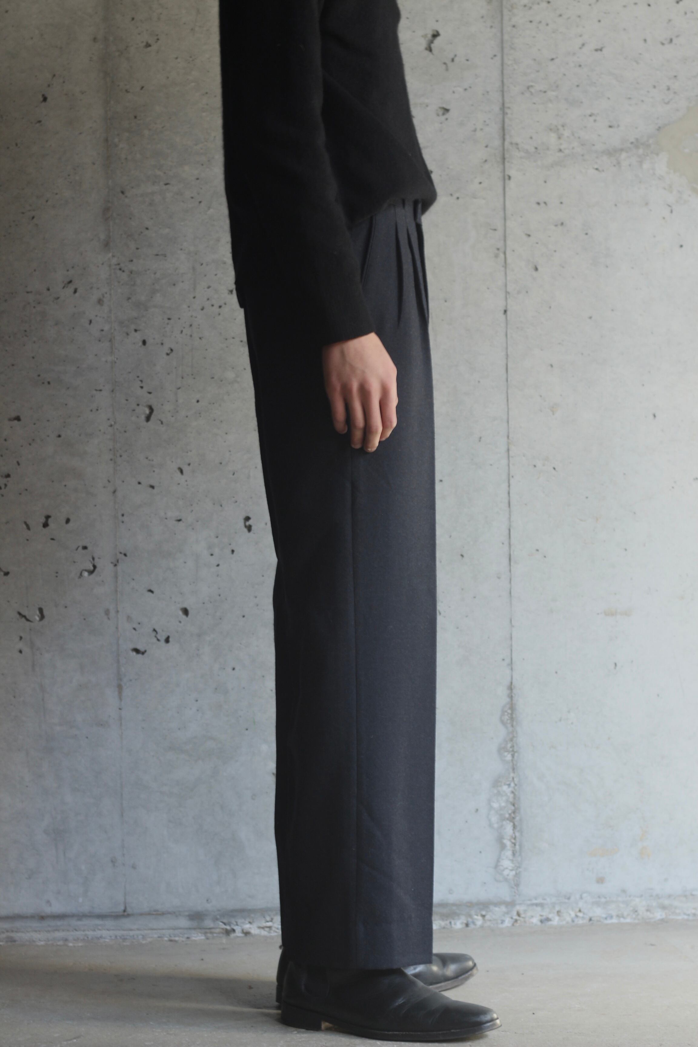 メゾンブランドらしい高品質なウールギャバジン生地でウールとは思えないほどのとろみファブリック。起毛感少なくウール特有のハリ,光沢をそのままに。なスペシャルなスラックス。