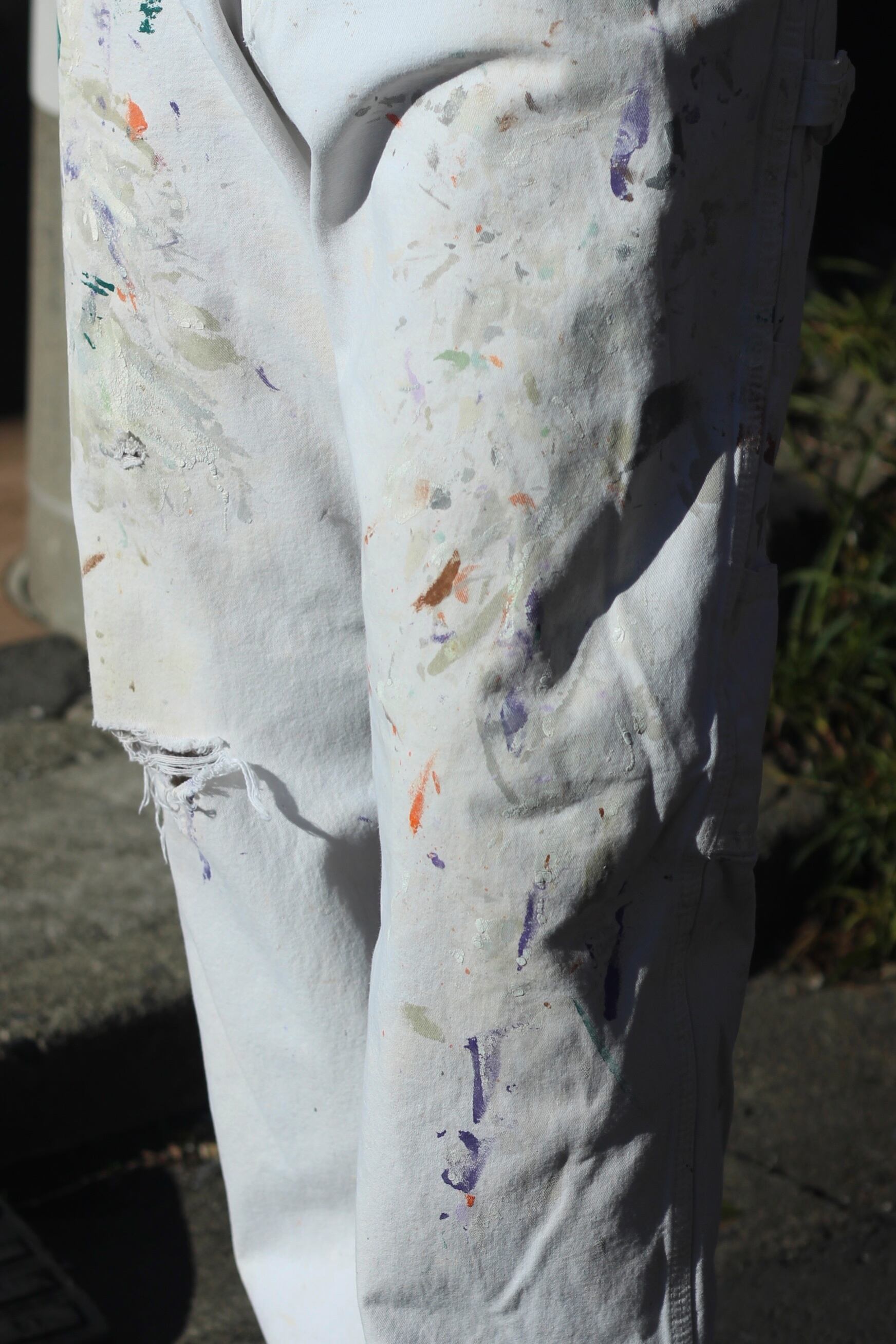 【CUBA】"Dickes" hard beautiful painted boro white cotton painter pants-8251-