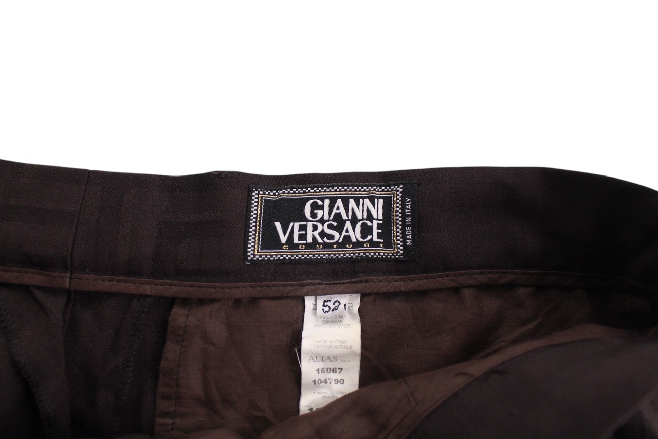 【COU】"GIANNI VERSACE" wool × silk no- tuck wide straight slacks-6013-