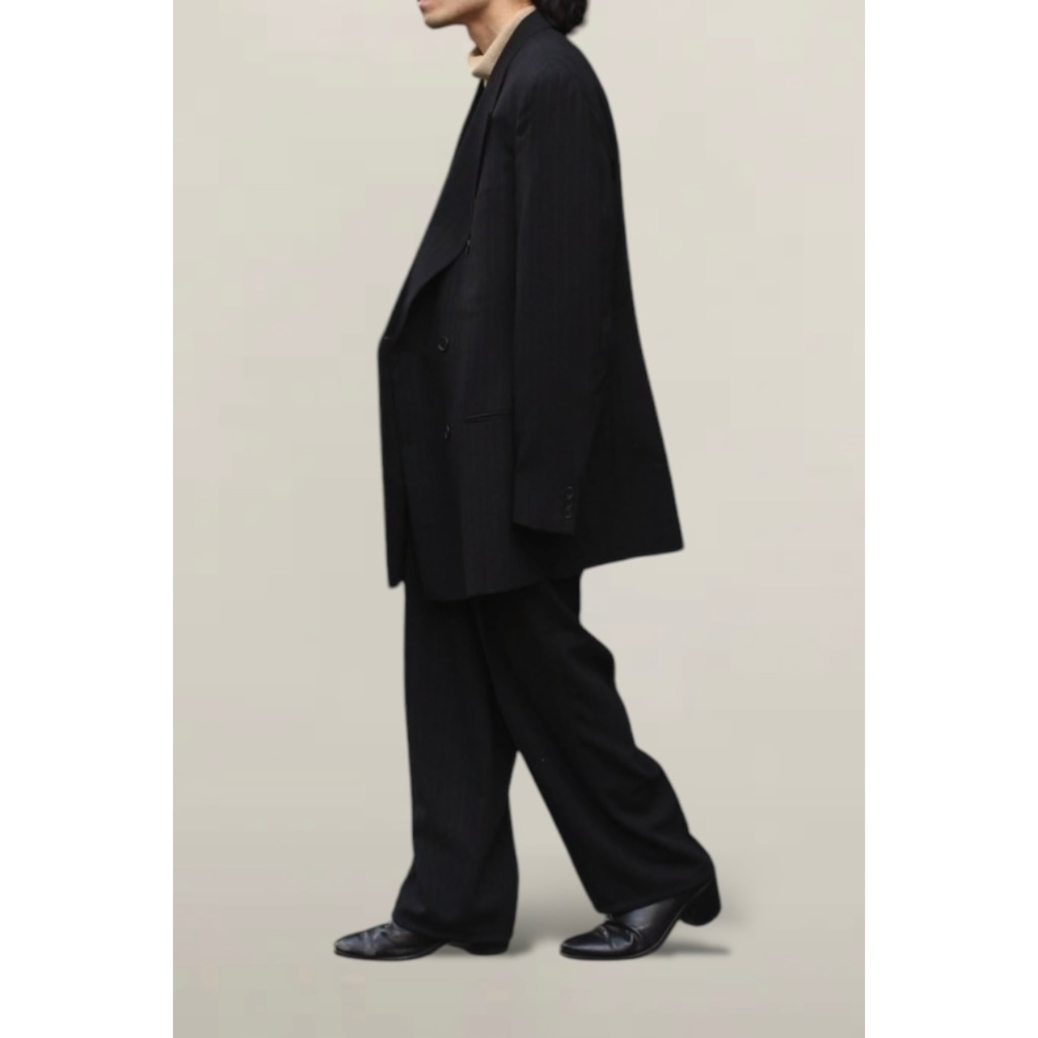 ジャケットはミドル丈程のダブルテーラード。スラックスは2タックとなっておりどちらともシルエットが良い。