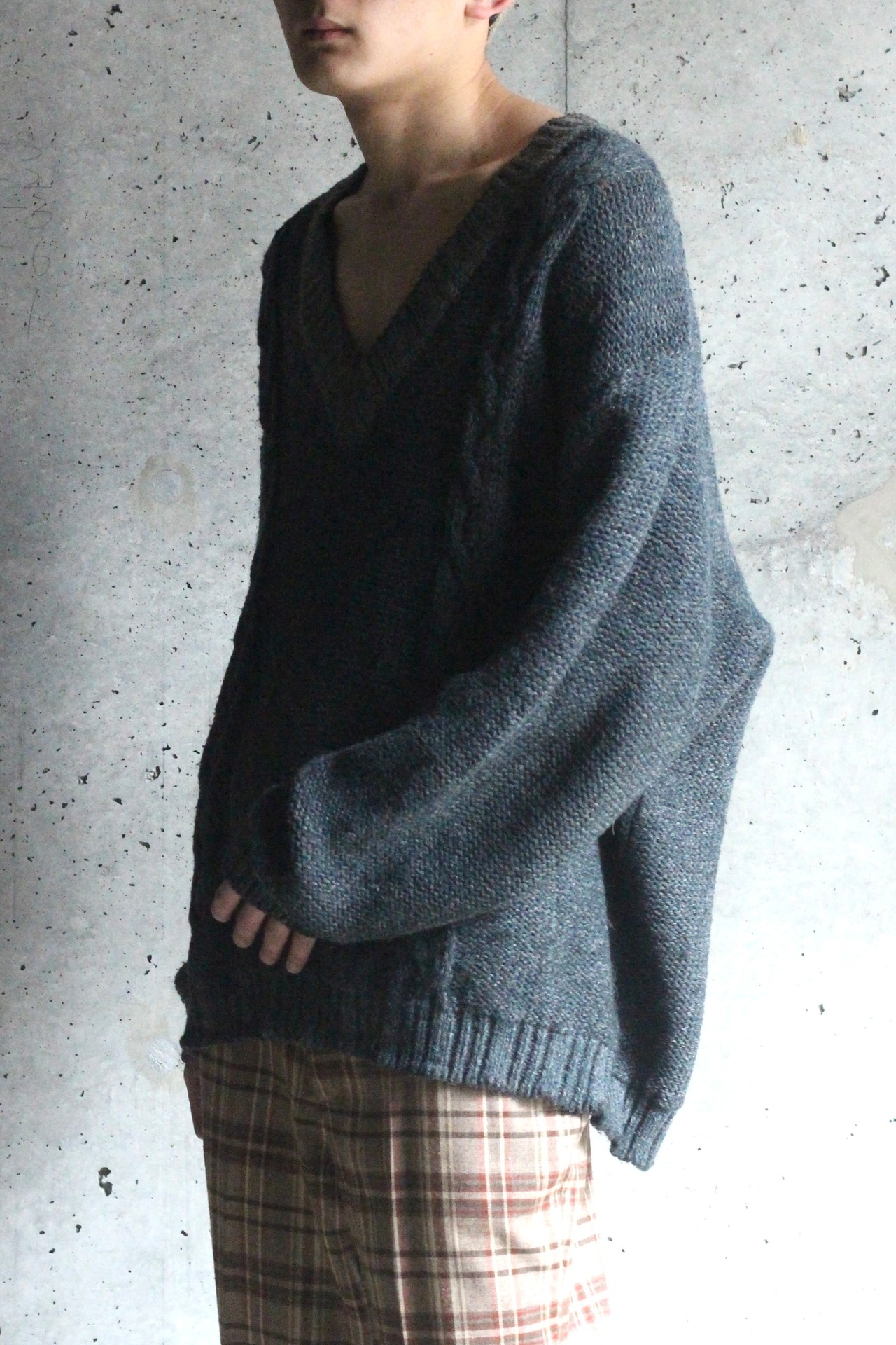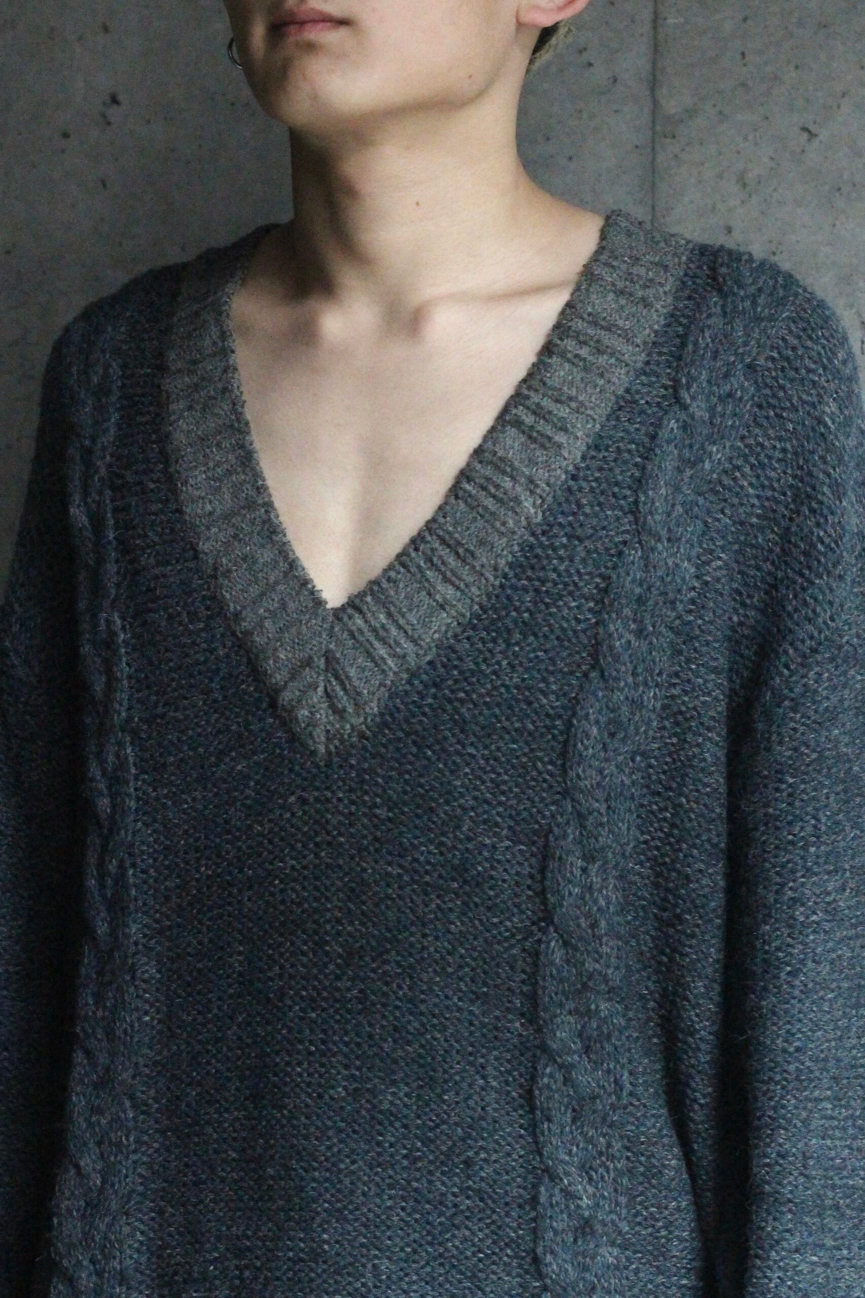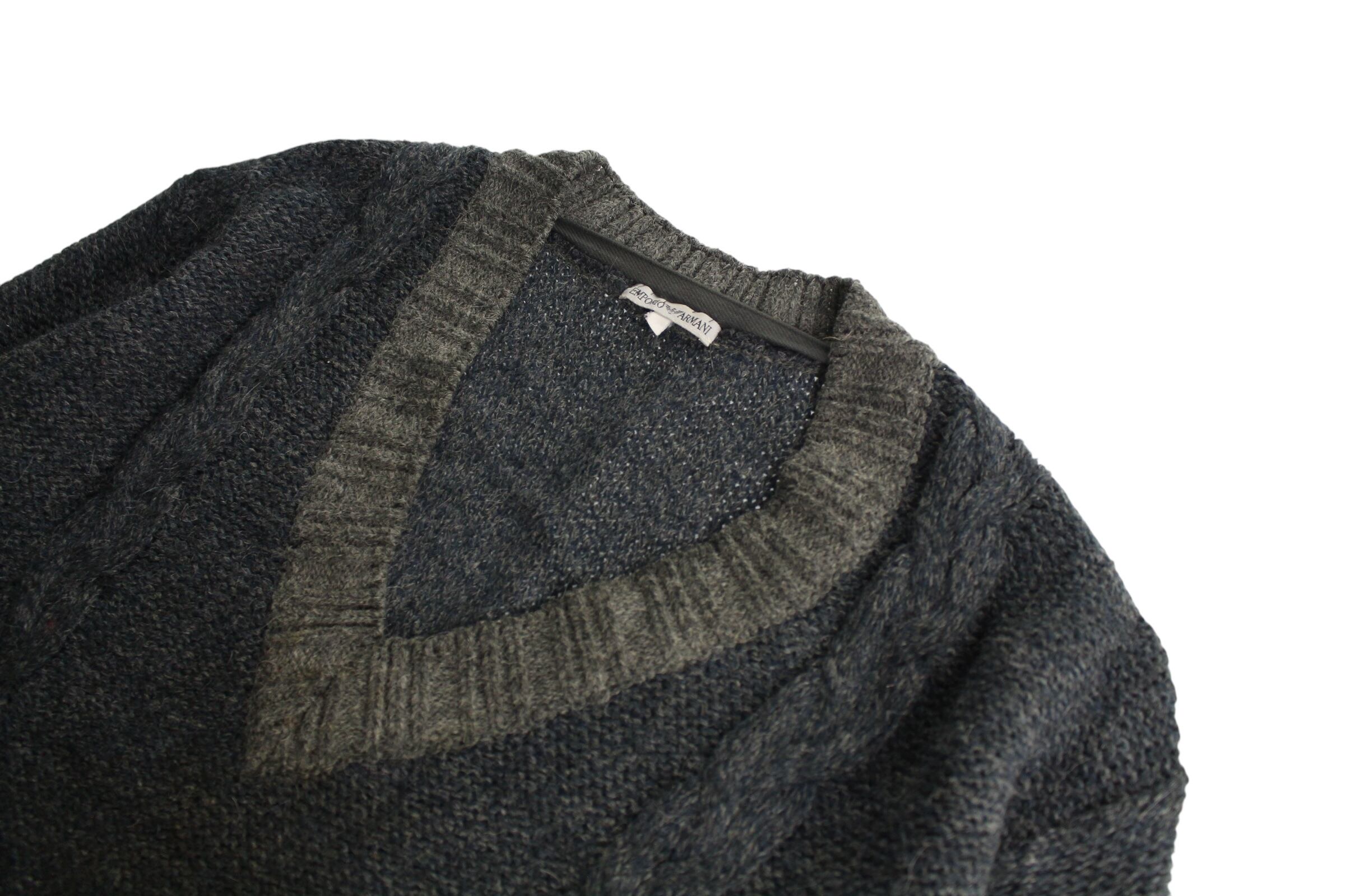 【FIFTY-FIFTY】EMPORIO ARMANI wool V-neck cable Knit -10104-