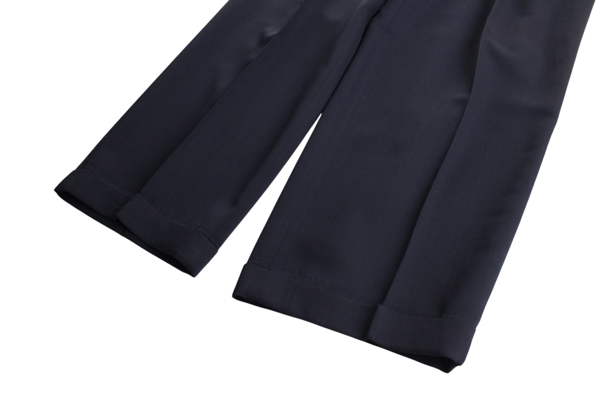 おそらくピュアウールのさらっとした質感。通年で着やすい生地とネイビーのカラーリングの相性が良いです◎