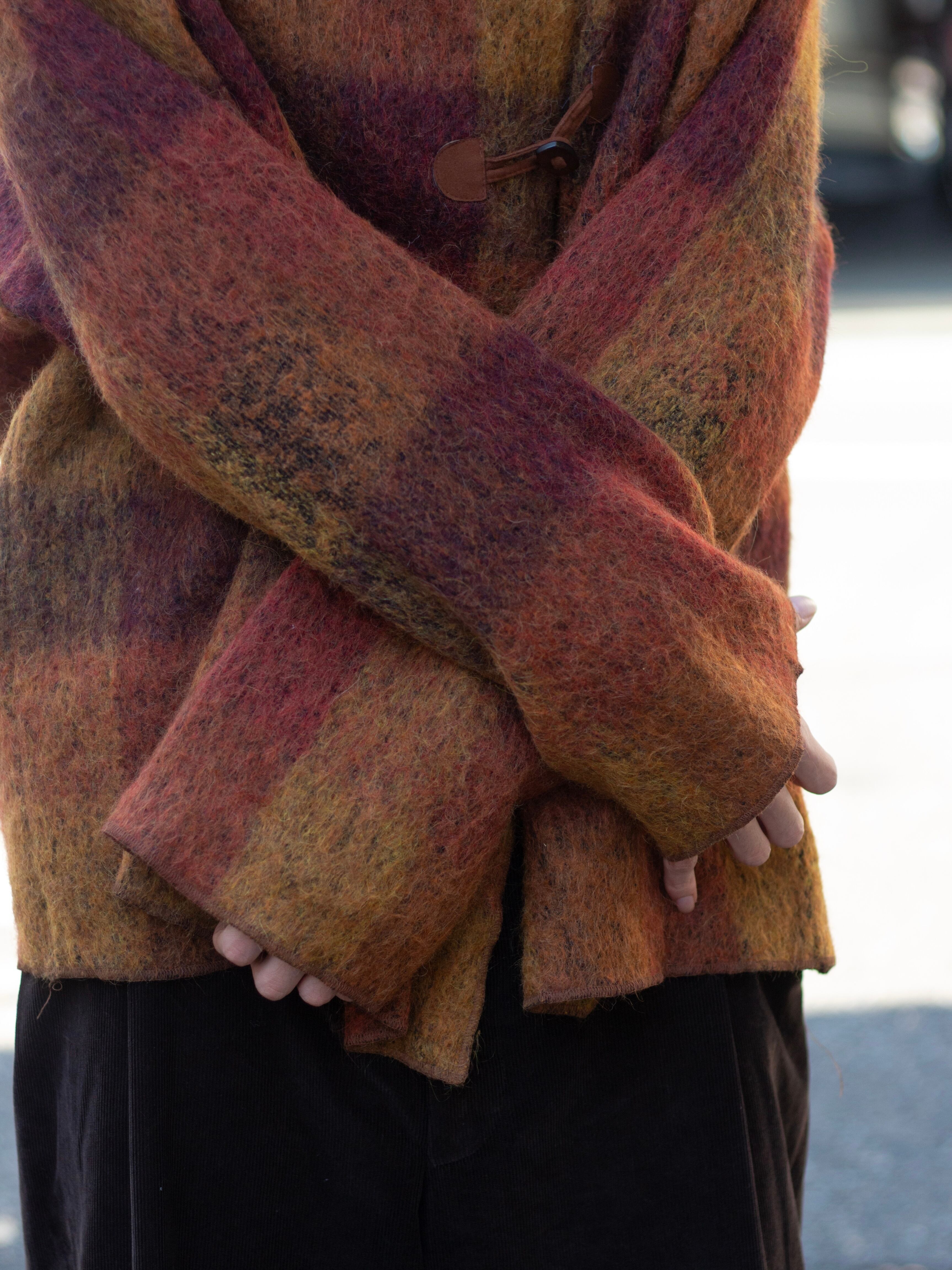 デザインの効いてるモヘア、アルパカ混紡のニットはあまり見かけないので、すごくおすすめです。