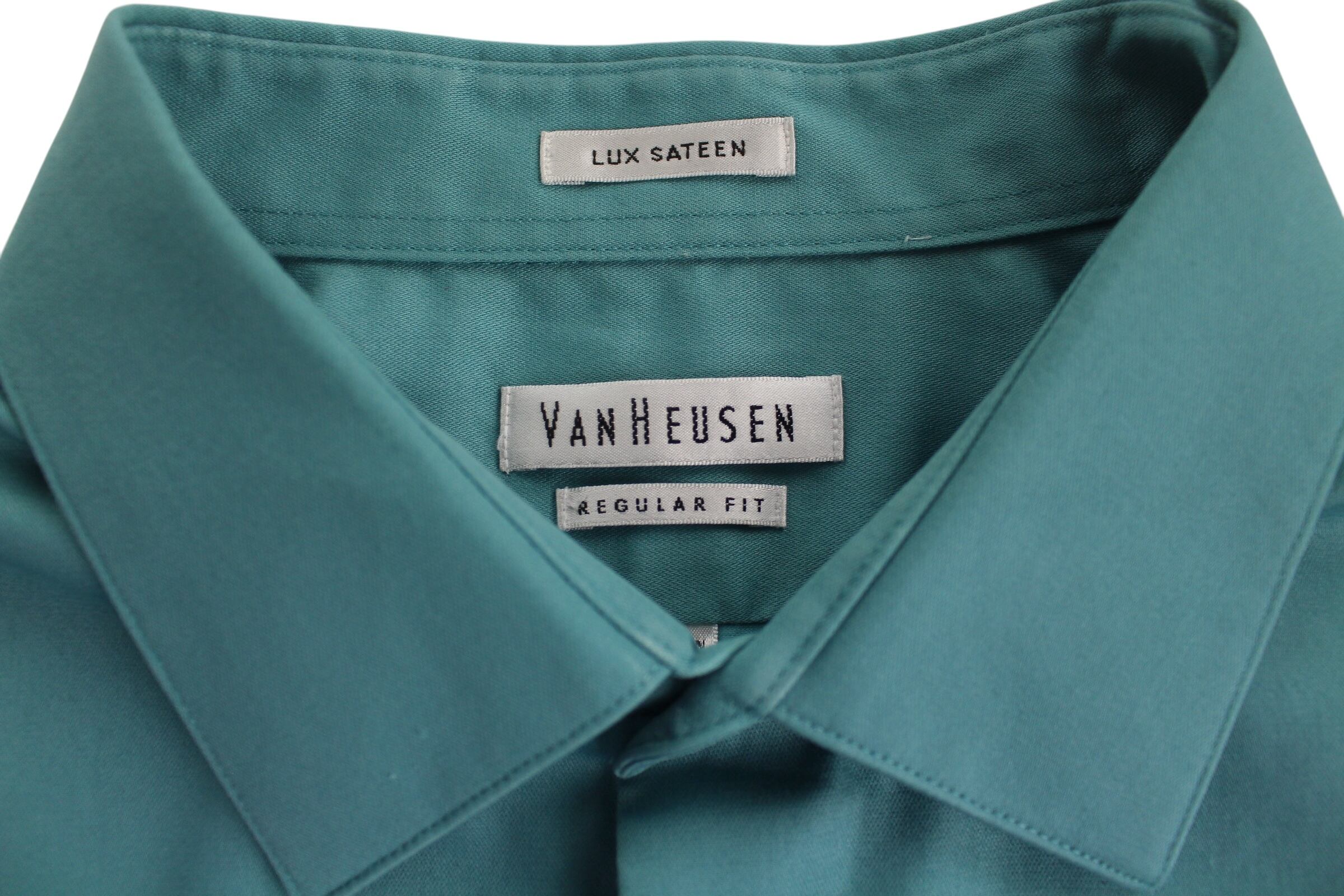 【CUBA】1990s "VANHUSEN" turquoise blue color dress shirt-8286-