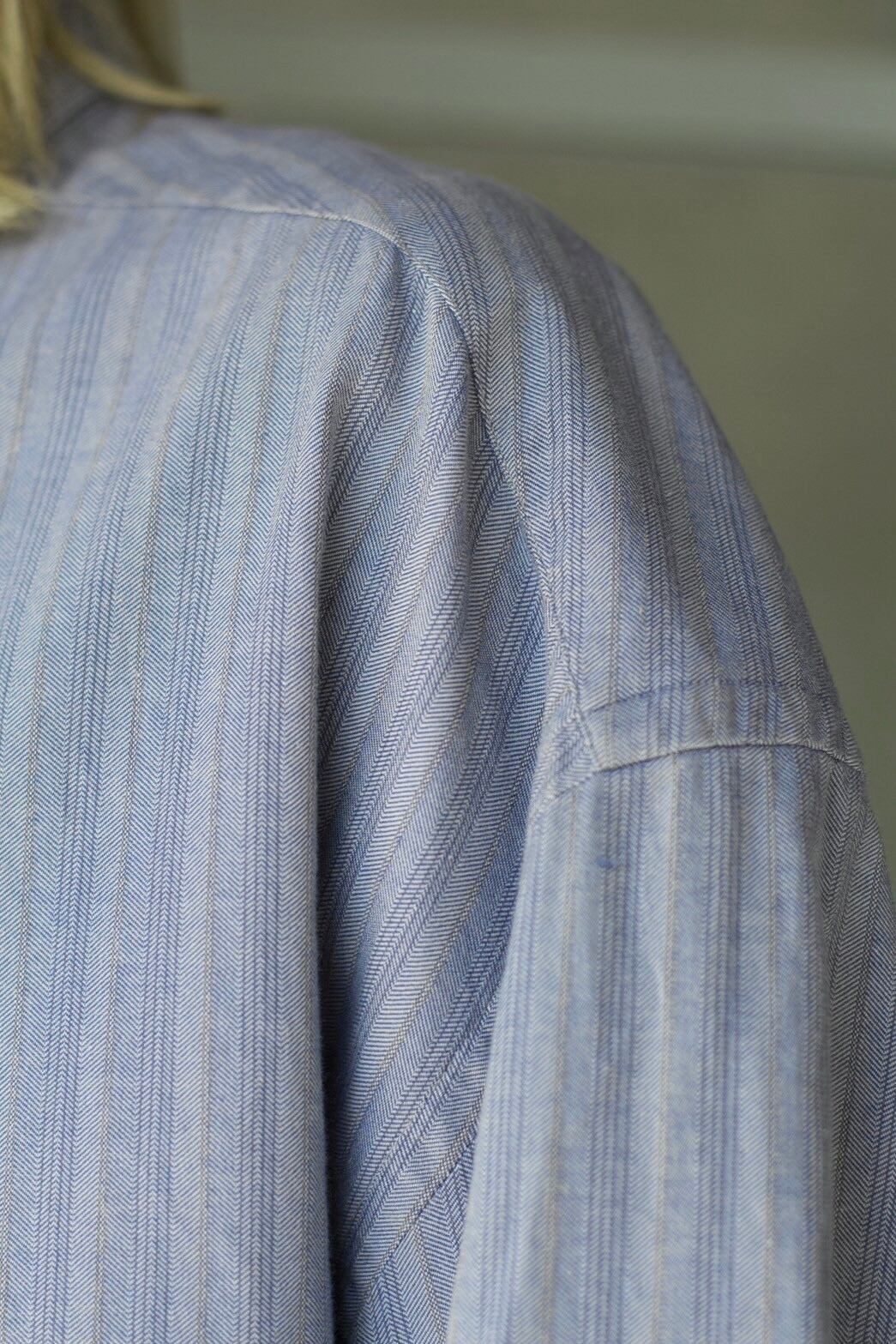 コットンファブリックながらハイブランドらしい柔らかさに絶妙なストライプパターンが入っています。