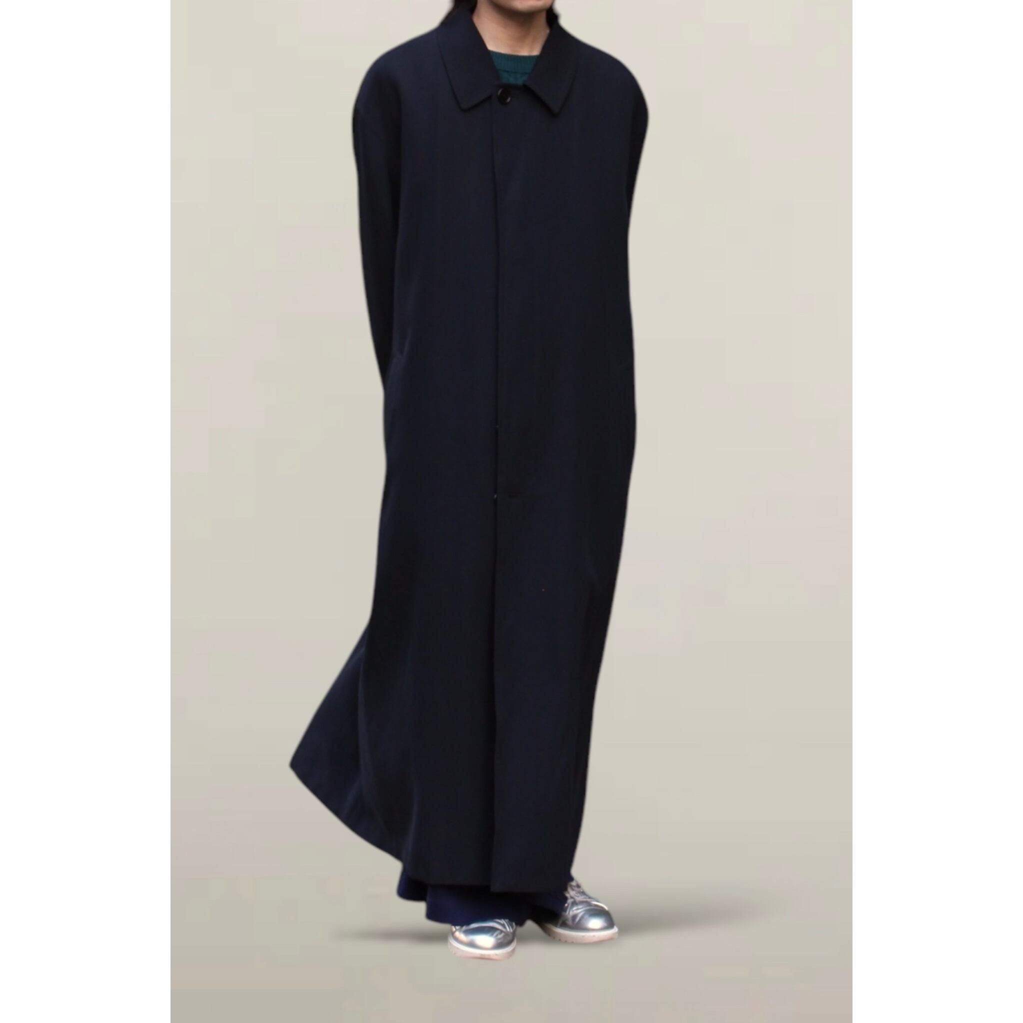 ステンカラーの首元スッキリした印象から大胆で大きな身幅。たっぷり生地を使ったサイジングで重厚感が最高です。