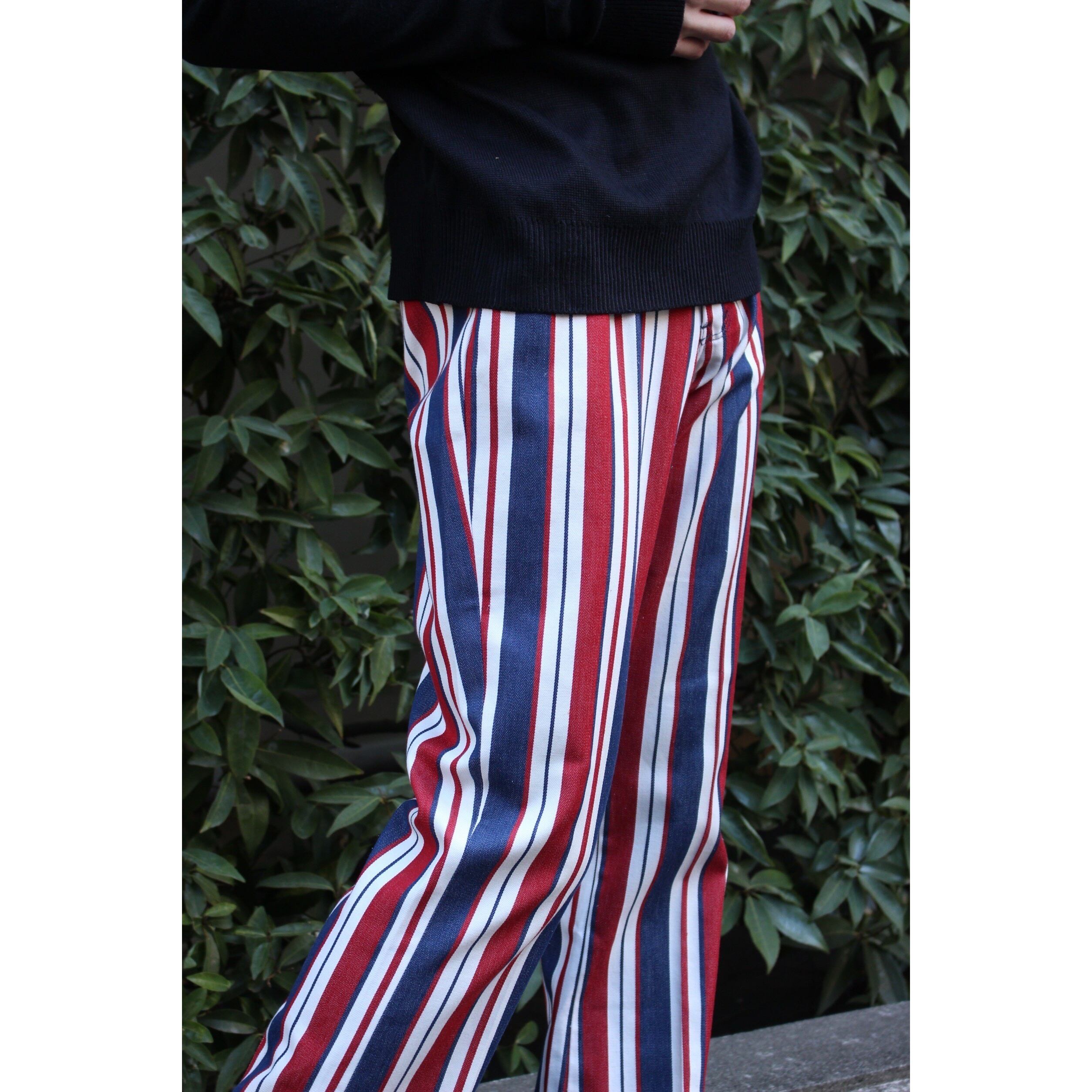 ストライプは視覚的なスタイルアップはもちろん、素敵なカラーリングが他のアイテムとの色合わせにももってこいなパンツです◎