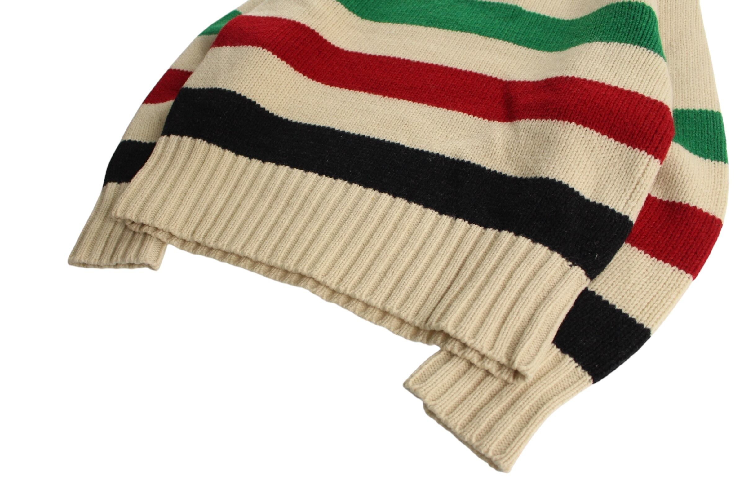 特徴的なショールカラーとオフホワイトボディに映えるレッド・グリーン・ネイビーのボーダーデザイン。ファンの心をくすぐるラルフらしい色合わせは素晴らしいです☺︎