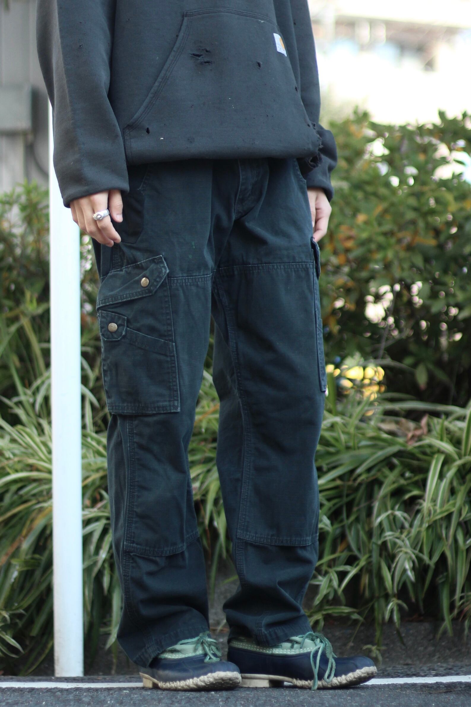 【CUBA】1990s vintage "Carrharrt" nice fade black straight silhouette double knee cargo pants -8309-