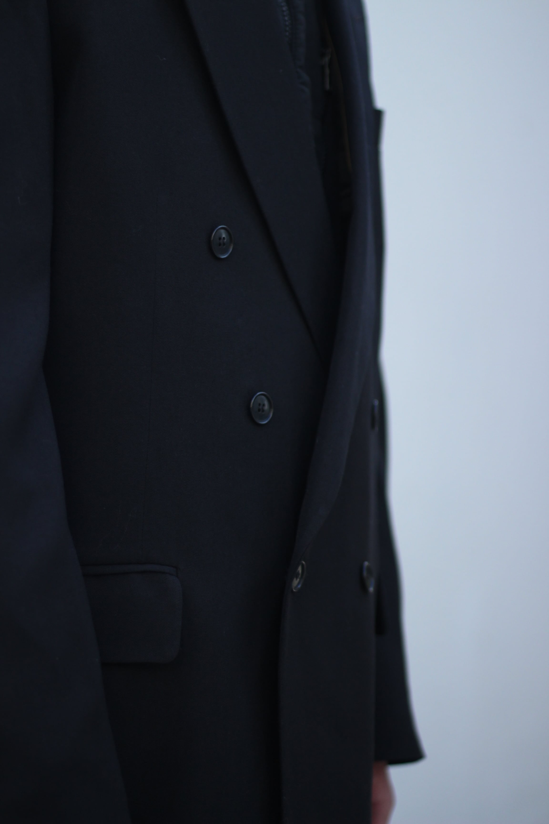 王道のブラックカラーでウール,ポリエステルファブリックの柔らかなドレープ感。