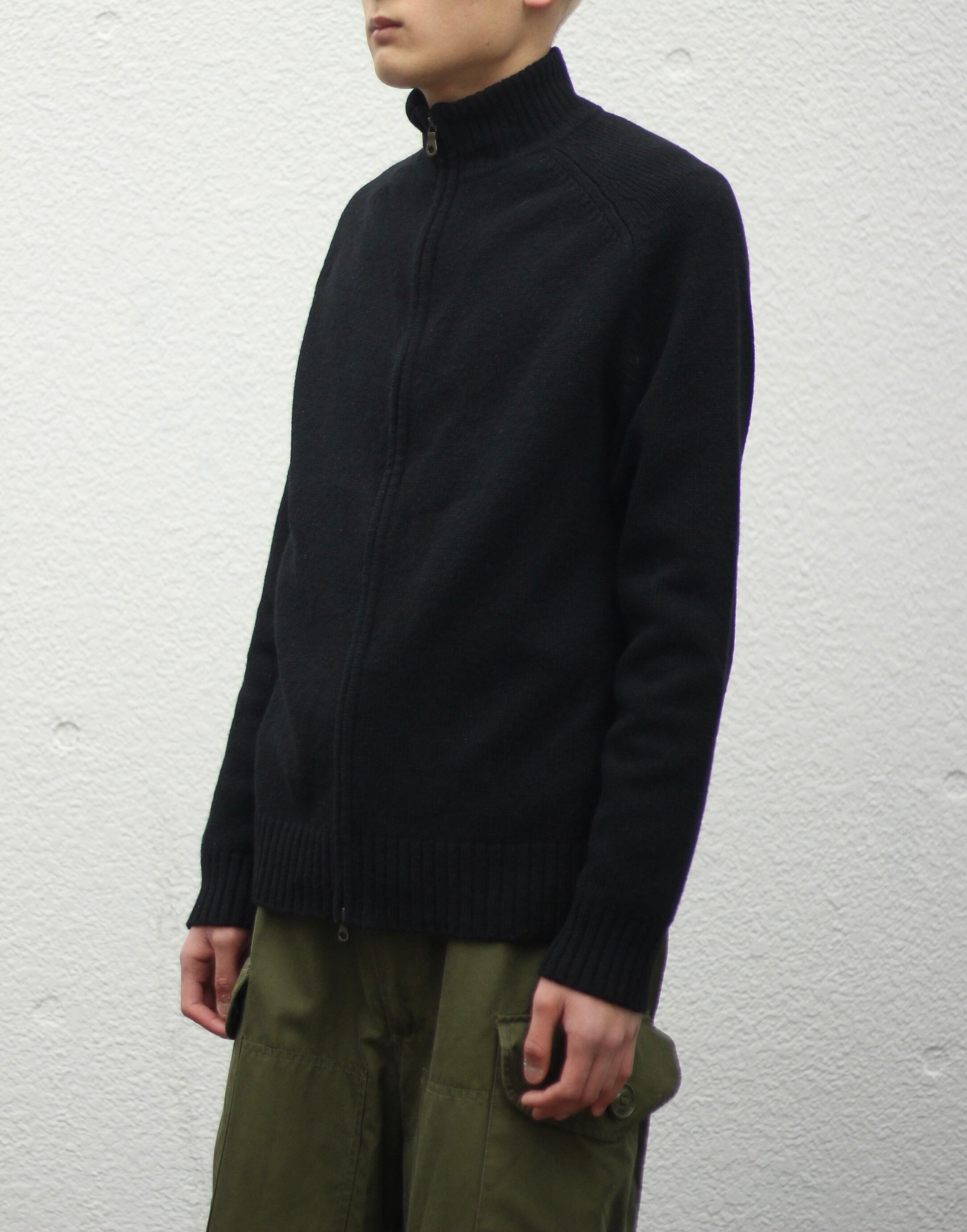 ウールよりも軽くて暖かいラムウールを使用。ハイゲージに編まれたボディは程よく肉厚で、とにかく肌触りが良い。フロントは嬉しいダブルジップアップでモックネックほどの程よい高さのネック。その佇まいは古着らしくないラグジュアリーなアイテム。