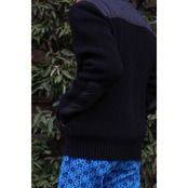 ナイロン切替もただの切替ではなく、動かす事の多い部分を避けてデザインされているので、ニットの伸縮性、柔らかさはそのまま動きやすいアイテム。