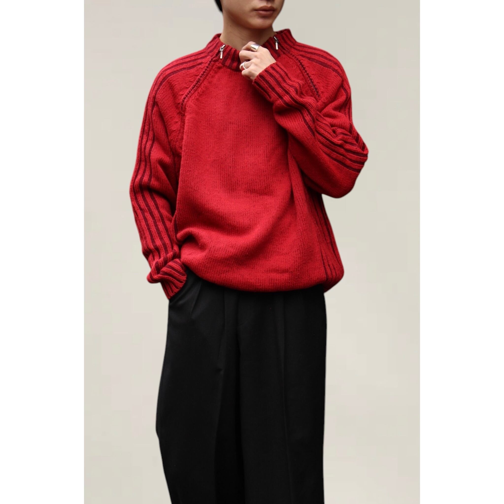 【OTSU】1990's gimmick half zip knit sweater -12116-