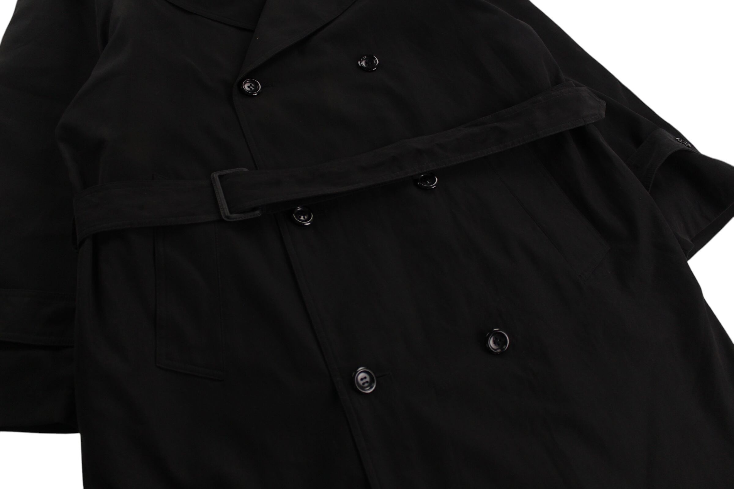 【MAKE MY DAY】1990s smooth fabric black long trench coat -2241-