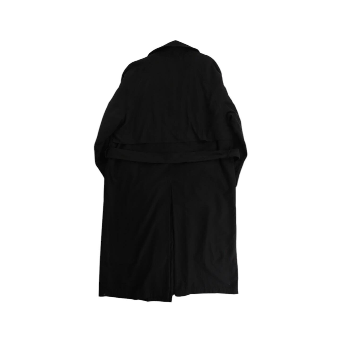 1990s smooth fabric black long trench coat