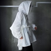 フロントのボタンはスナップボタン仕様。フード,裾部分はドローコードにより絞ることが可能です。