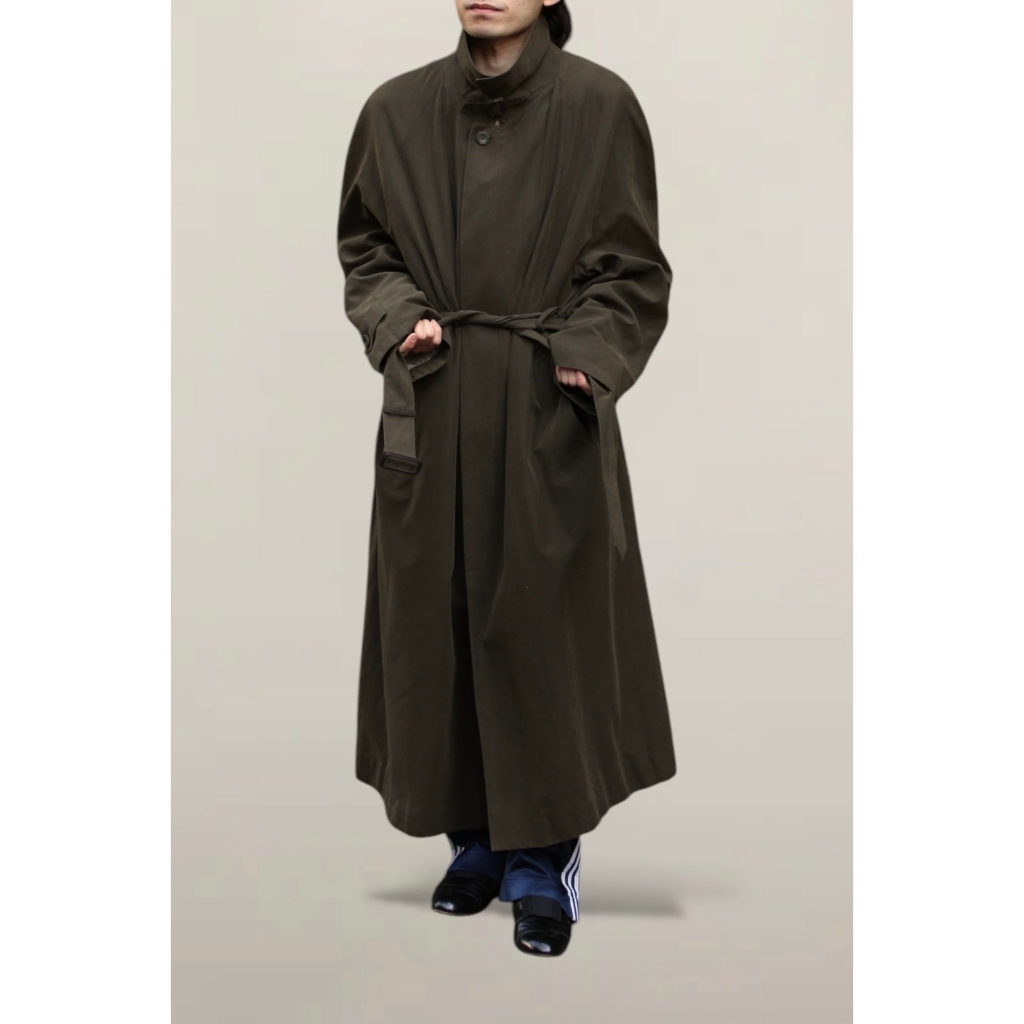 【OTSU】1990's smooth fabric hi-neck long balmacaan coat with belt made in USA -12230-