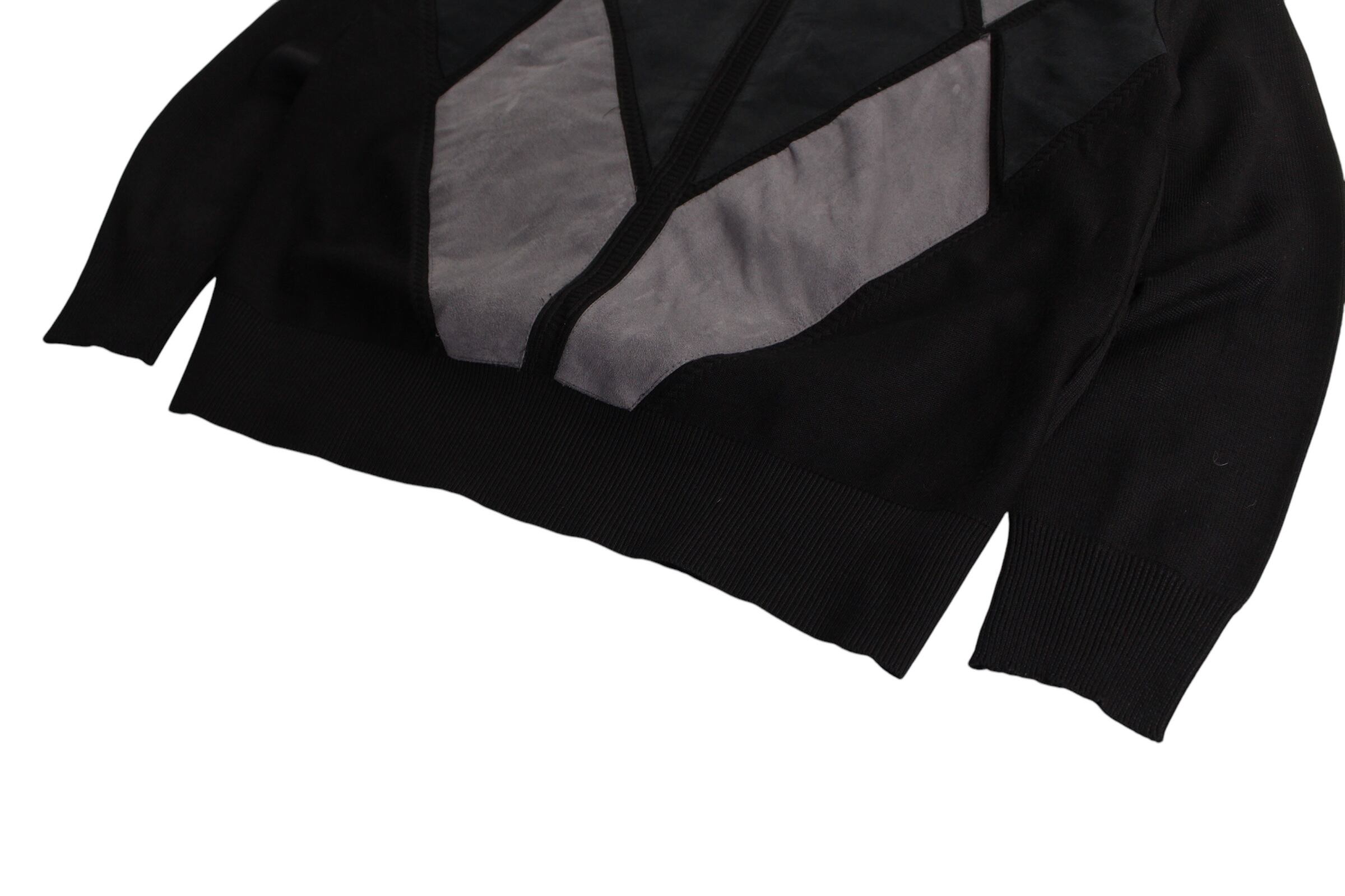 【OTSU】1990's faux suede swiching panel pattern design knit sweater-12249-