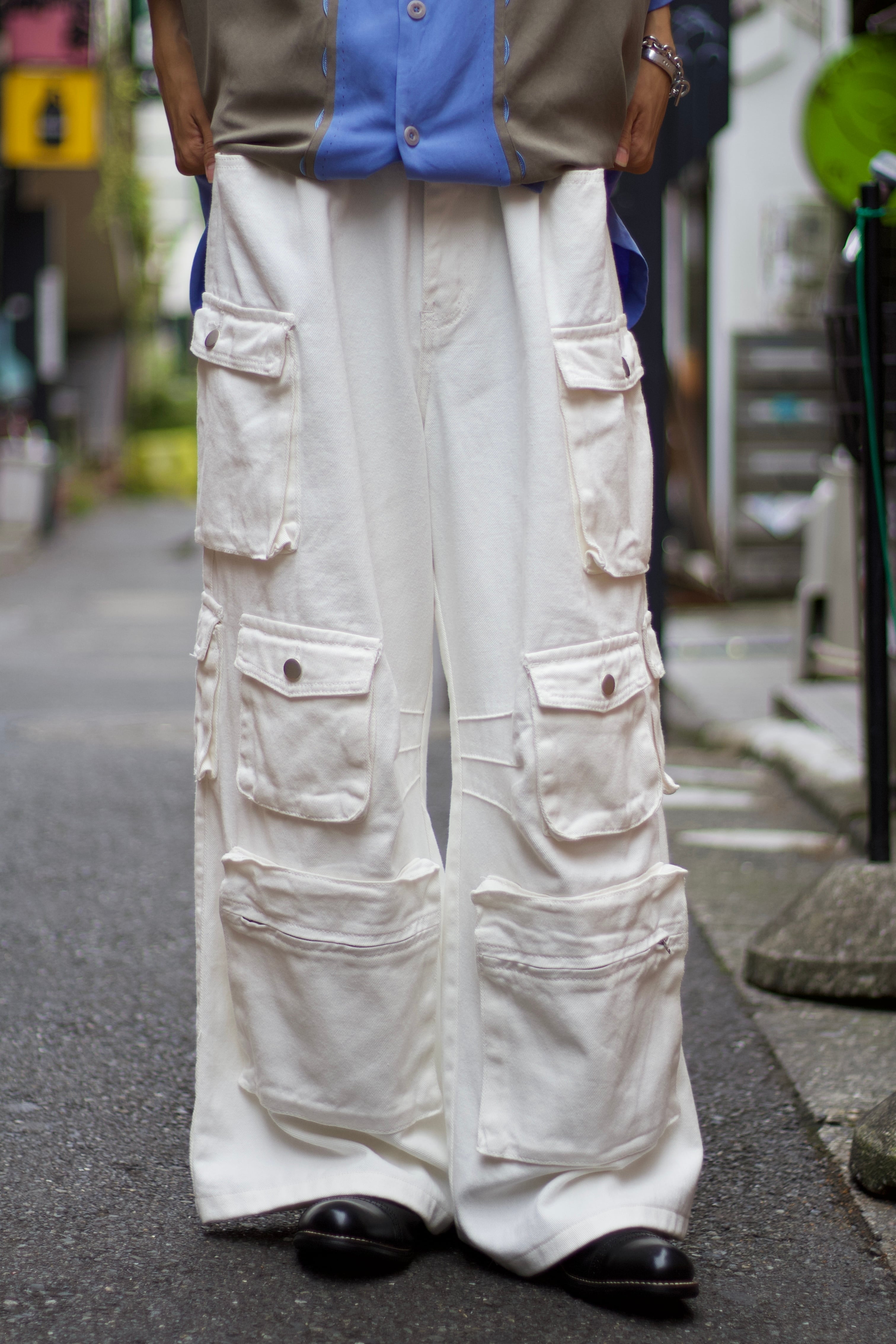 【OTSU TOKYO】DEAD STOCK ewtra wide gimmick denim cargo pants -1668-