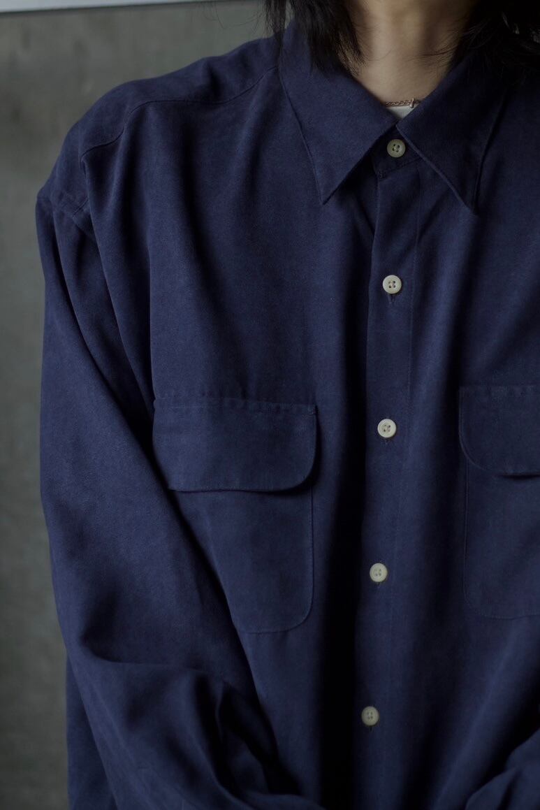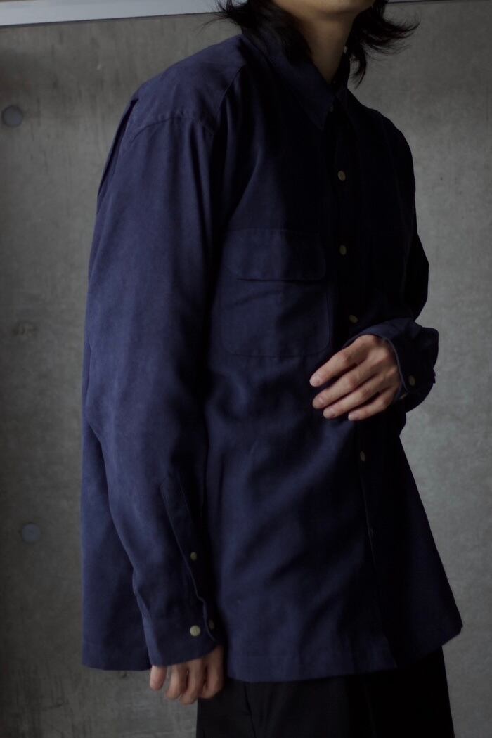 【MAKE MY DAY】Faux suede navy color shirt -2272-